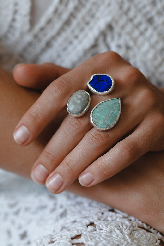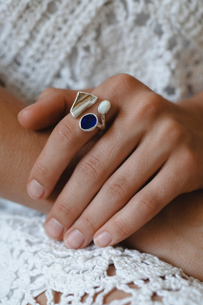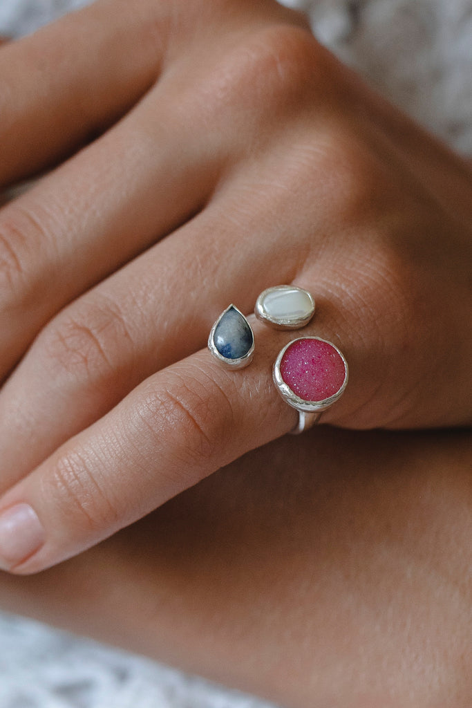 Agate Druse, Mother of Pearl and Lazurite Ring