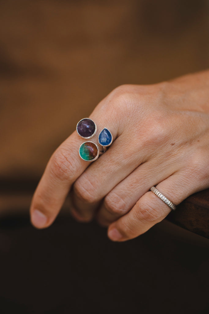 Amethyst, Peruvian Opal and Kyanite Ring