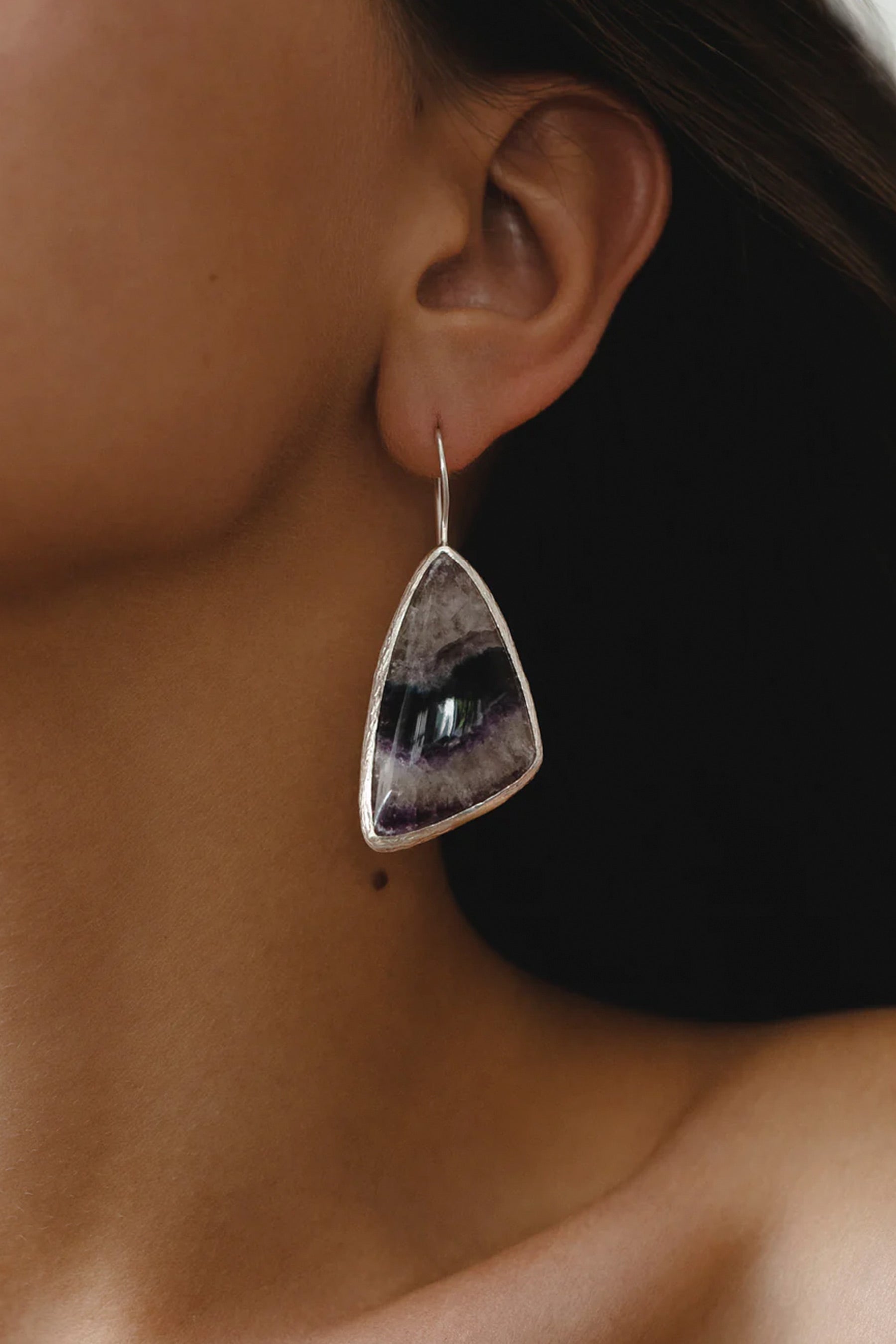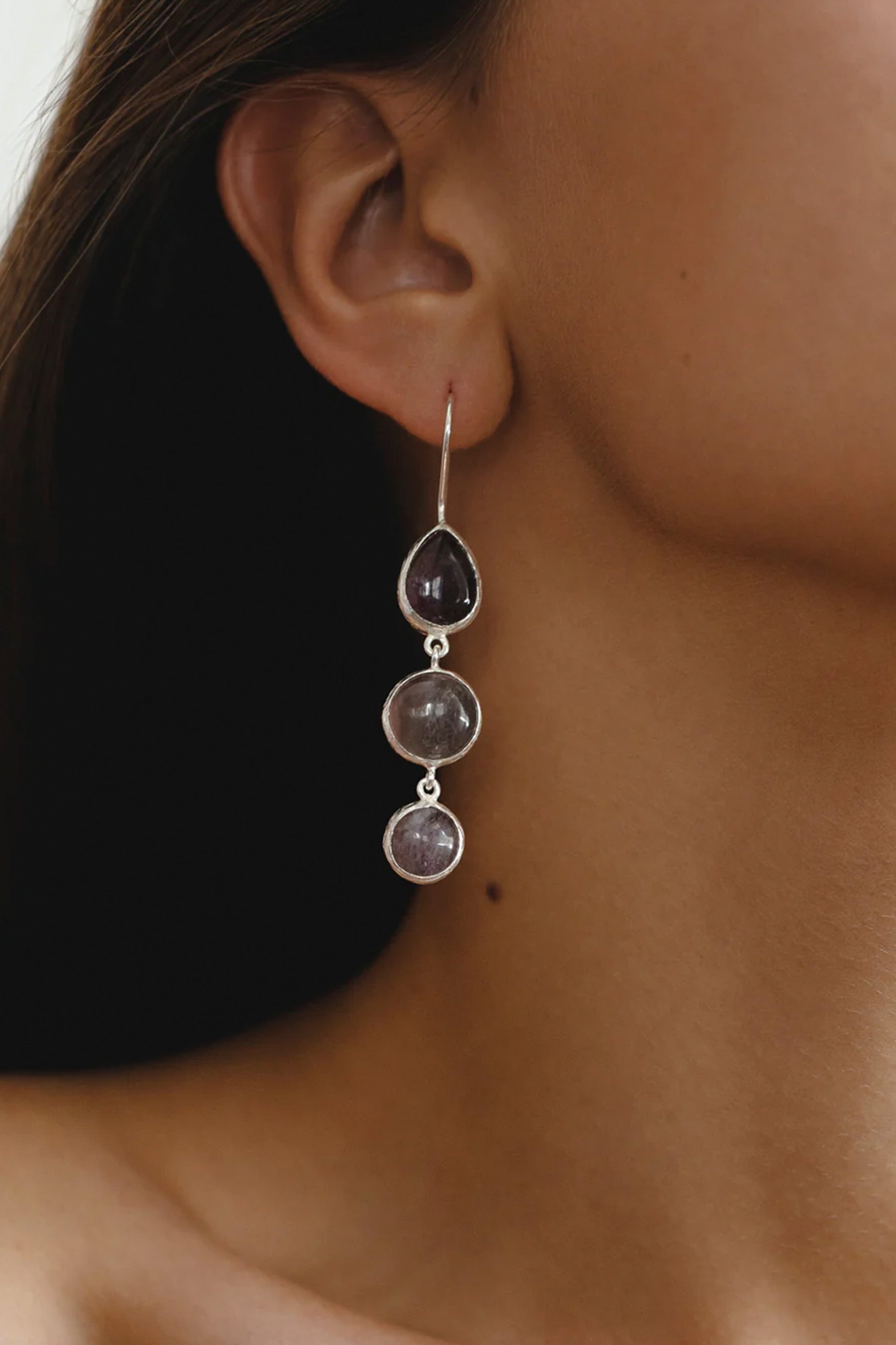· Earrings with natural semiprecious stones — fluorite and amethysts