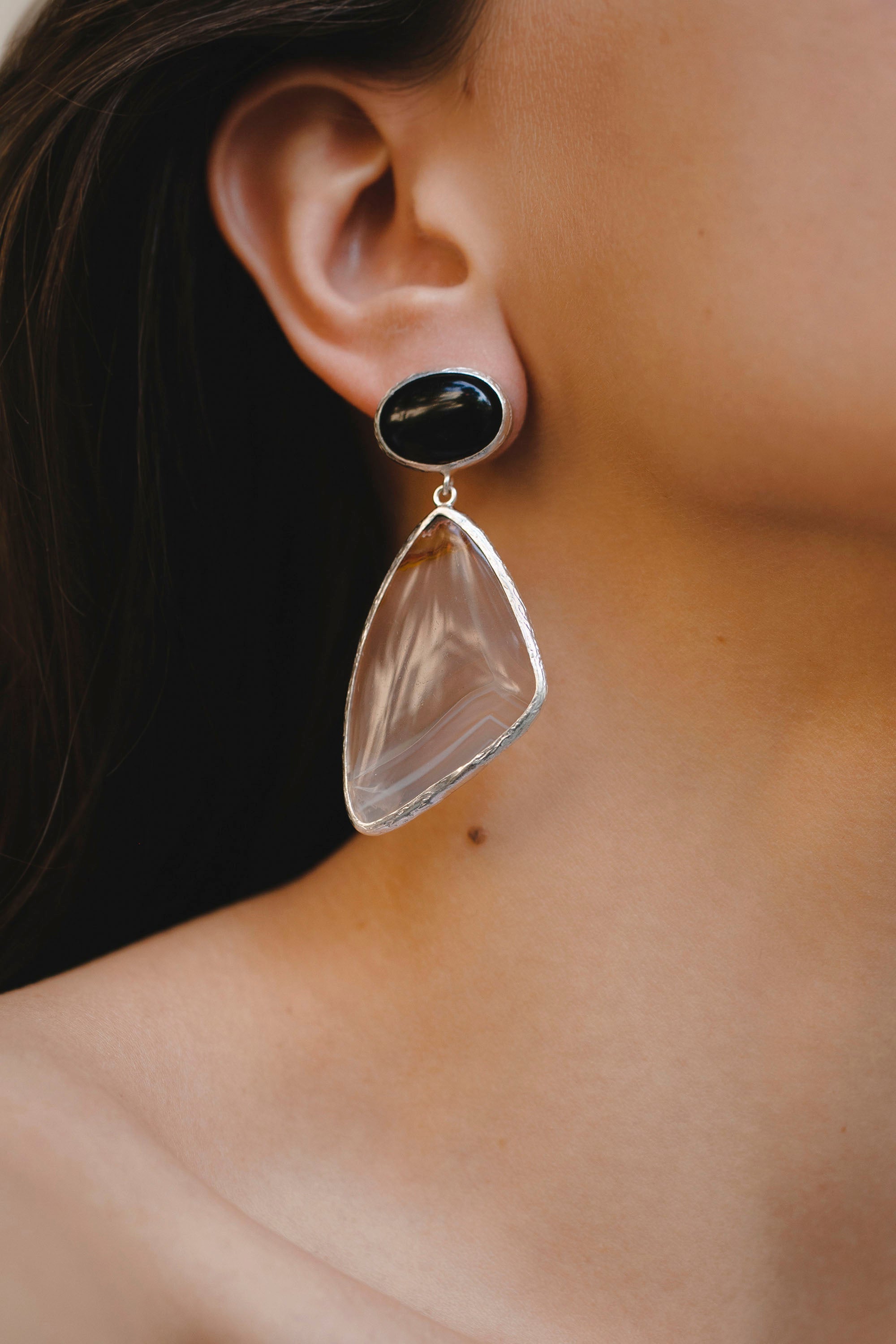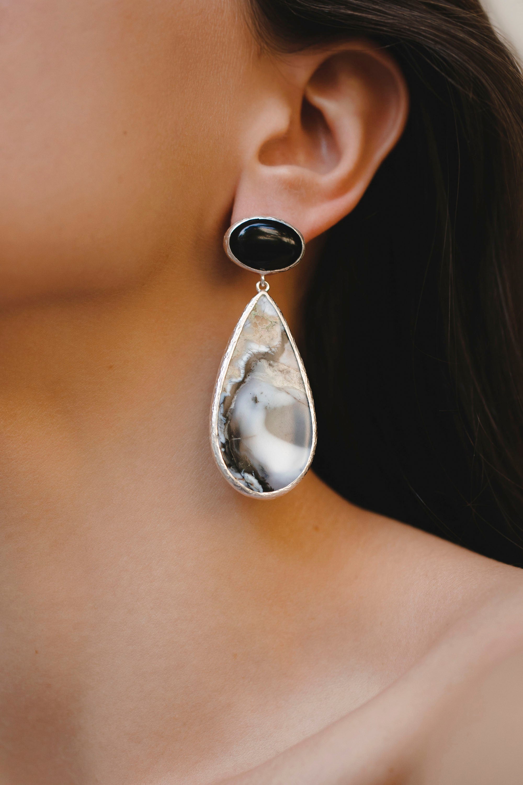 Black Agate and Agate Earrings
