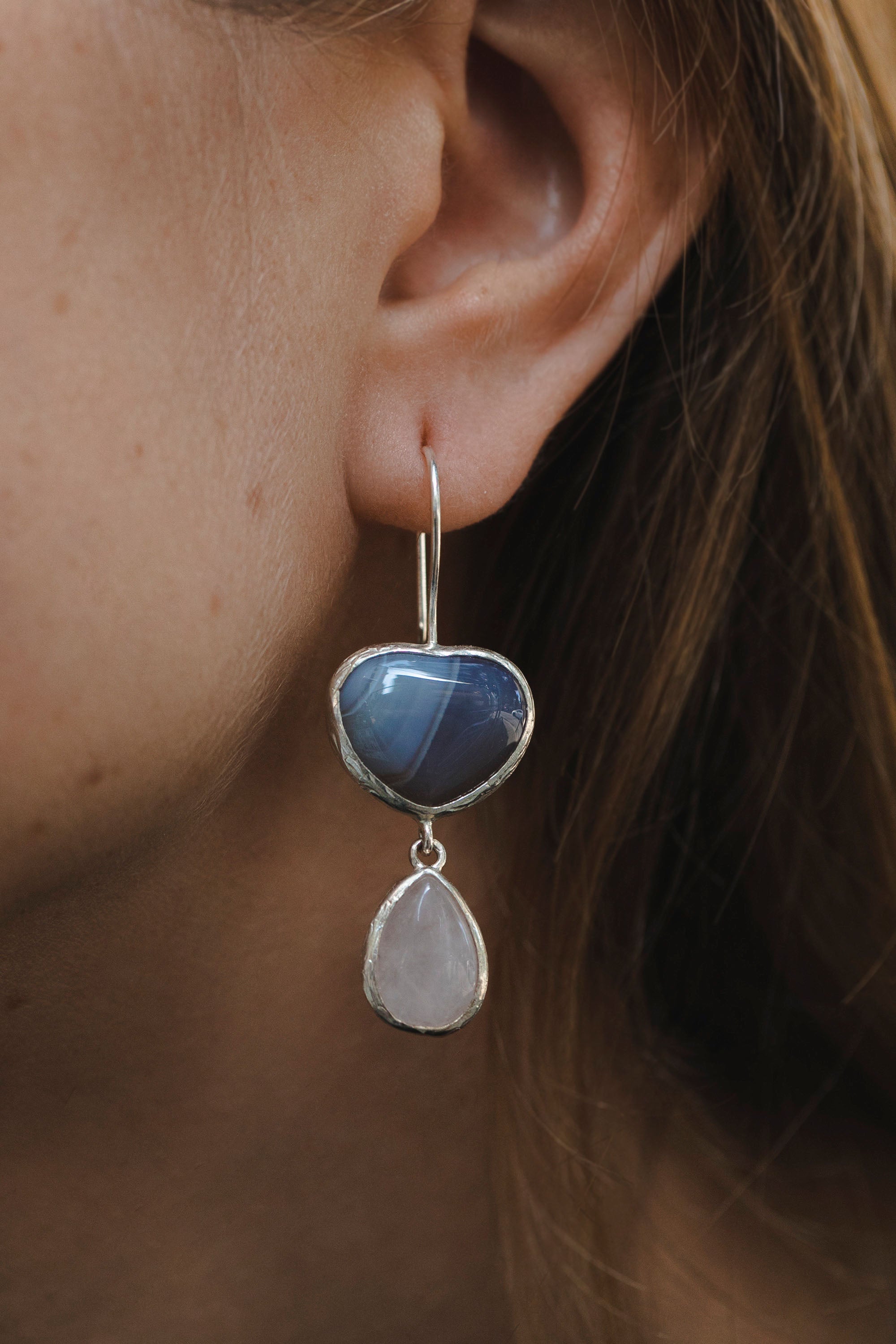 Heart Grey Agate and Rose Quartz Earrings