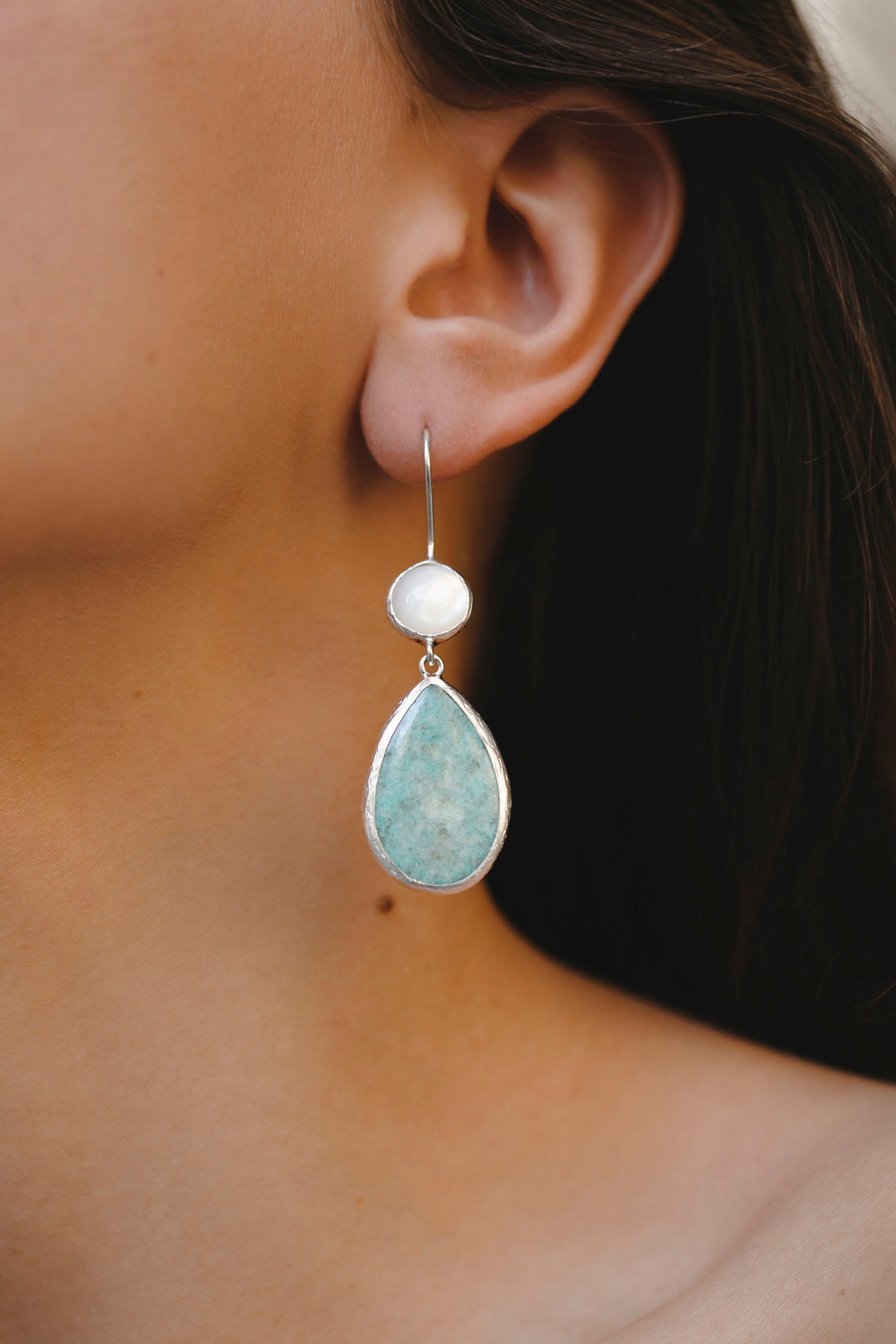 - earrings with mother of pearl and amazonite