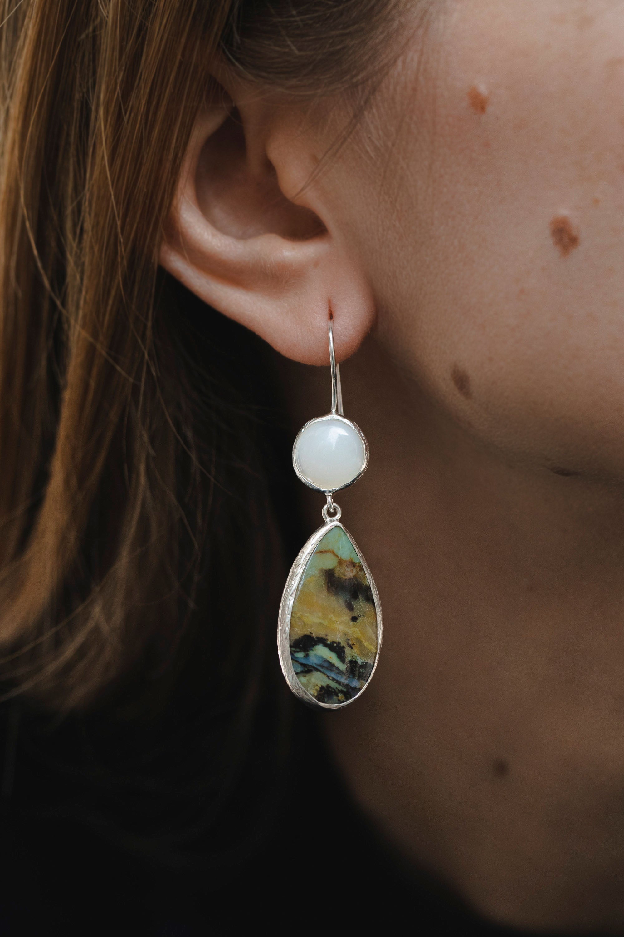 Mother of Pearl, Ophite and Chrysopal Earrings