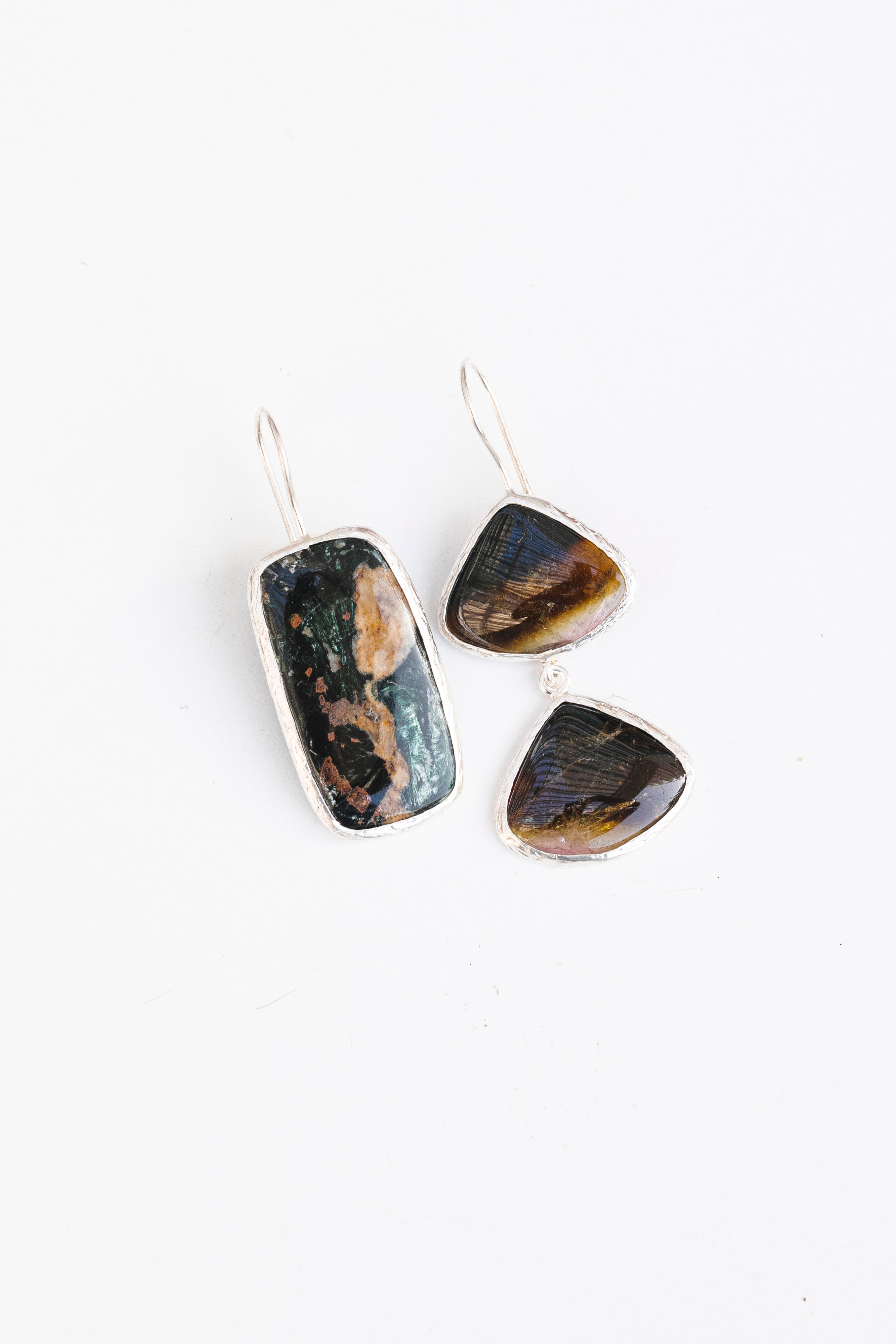 · Earrings with natural semiprecious stones — tourmaline and сlinochlore