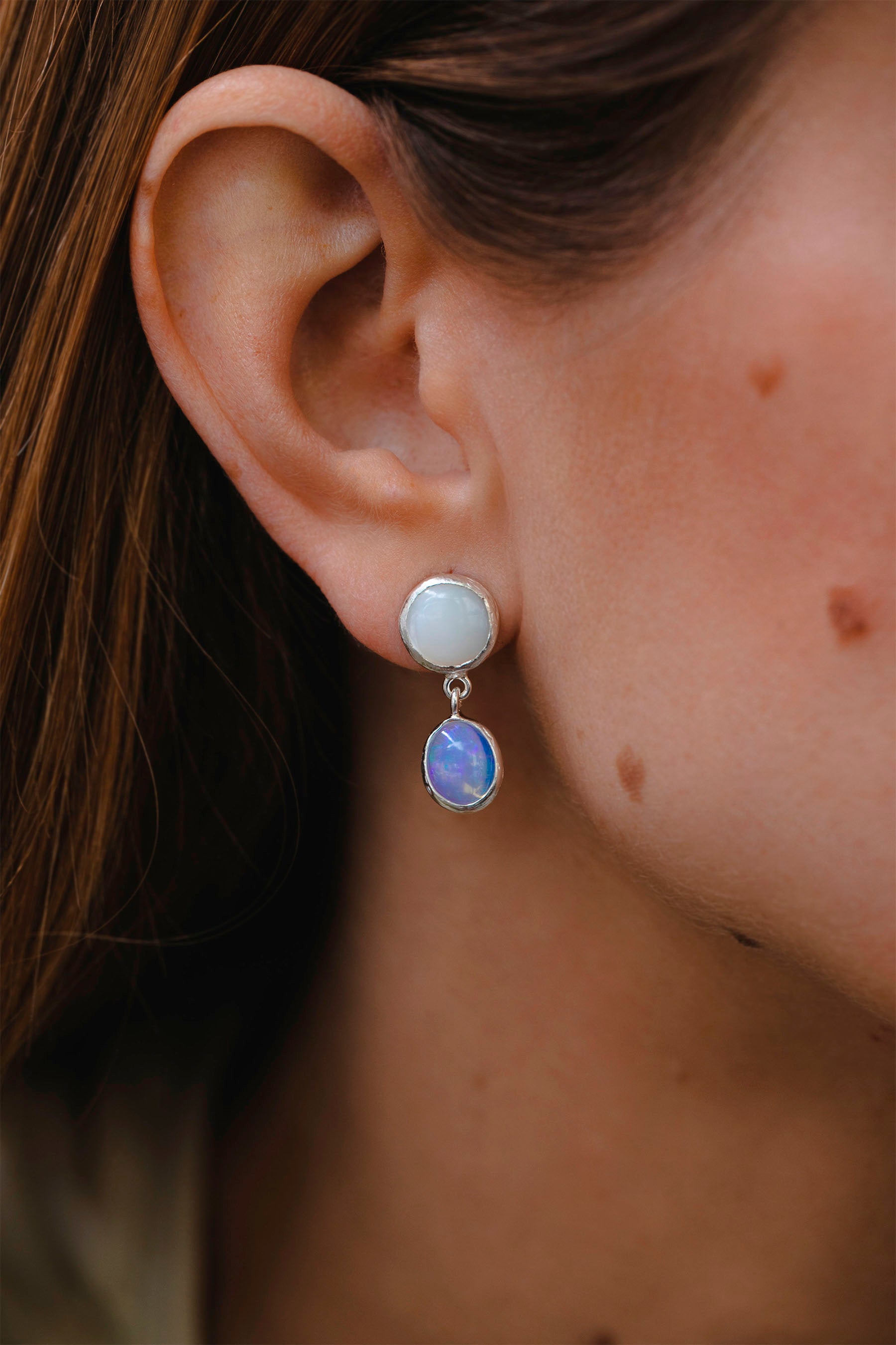 - stud earrings with ethiopian opal and mother of pearl