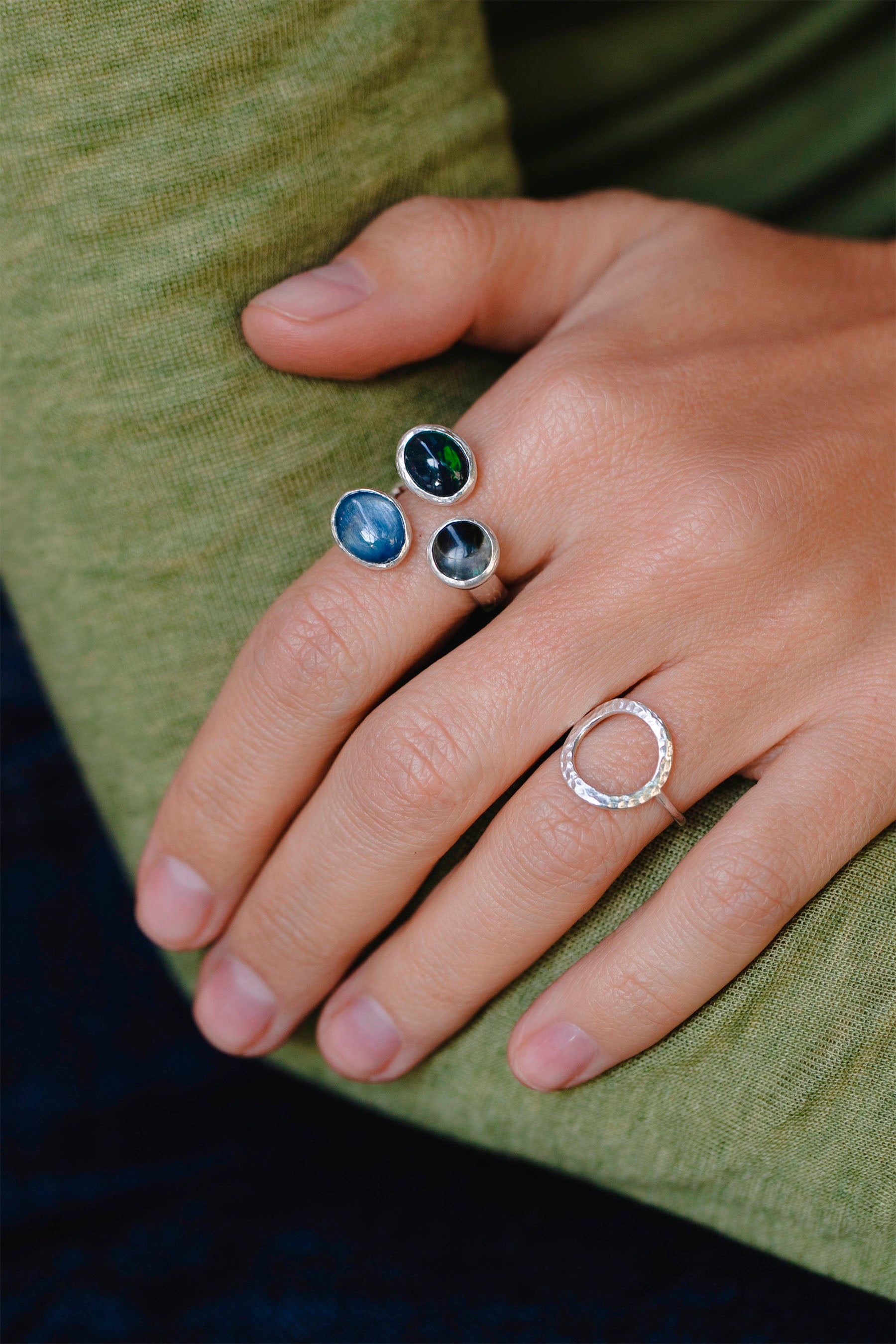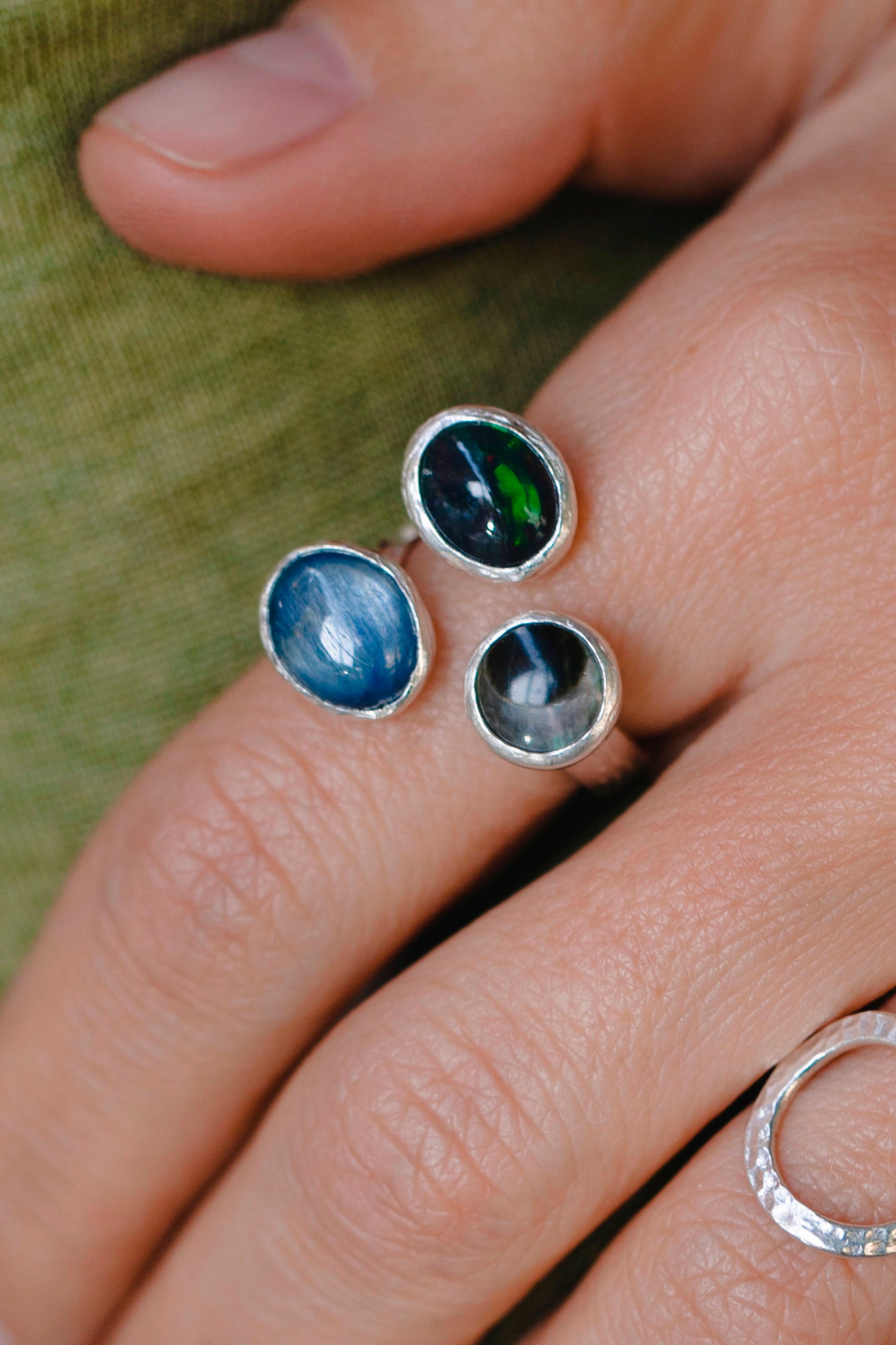 Ethiopian Opal, Kyanite and Mother of Pearl Ring
