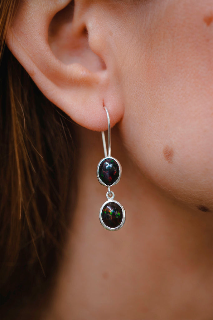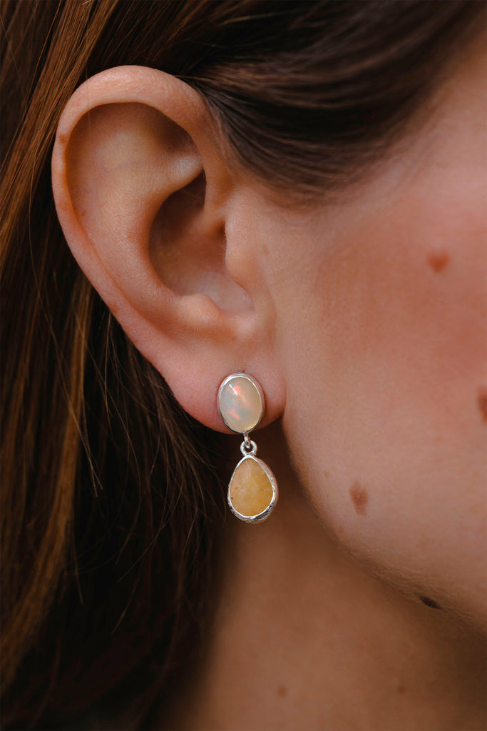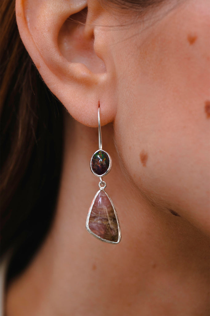Ethiopian Opal, Rose Quartz and Tourmaline Earrings