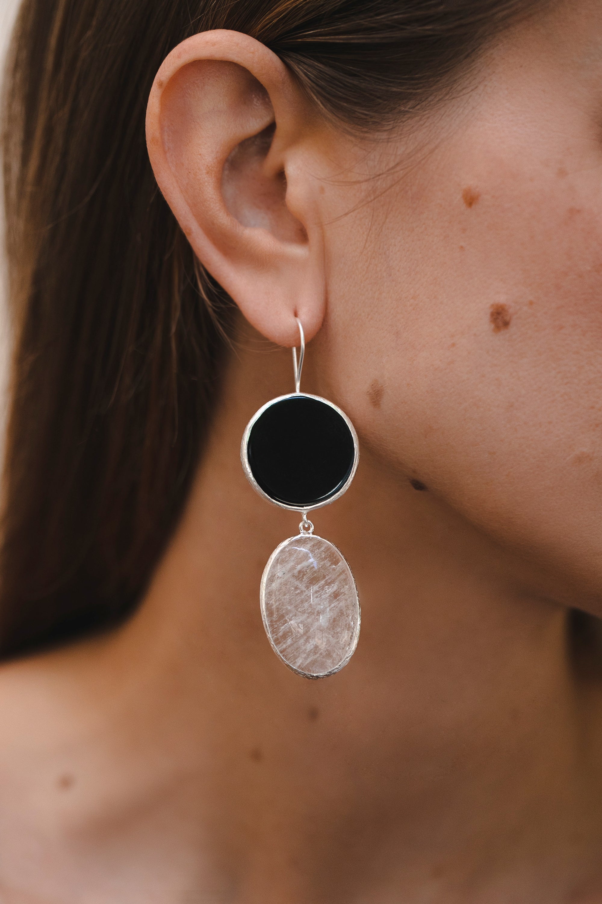 Big Black Agate and Rock Crystal Earrings