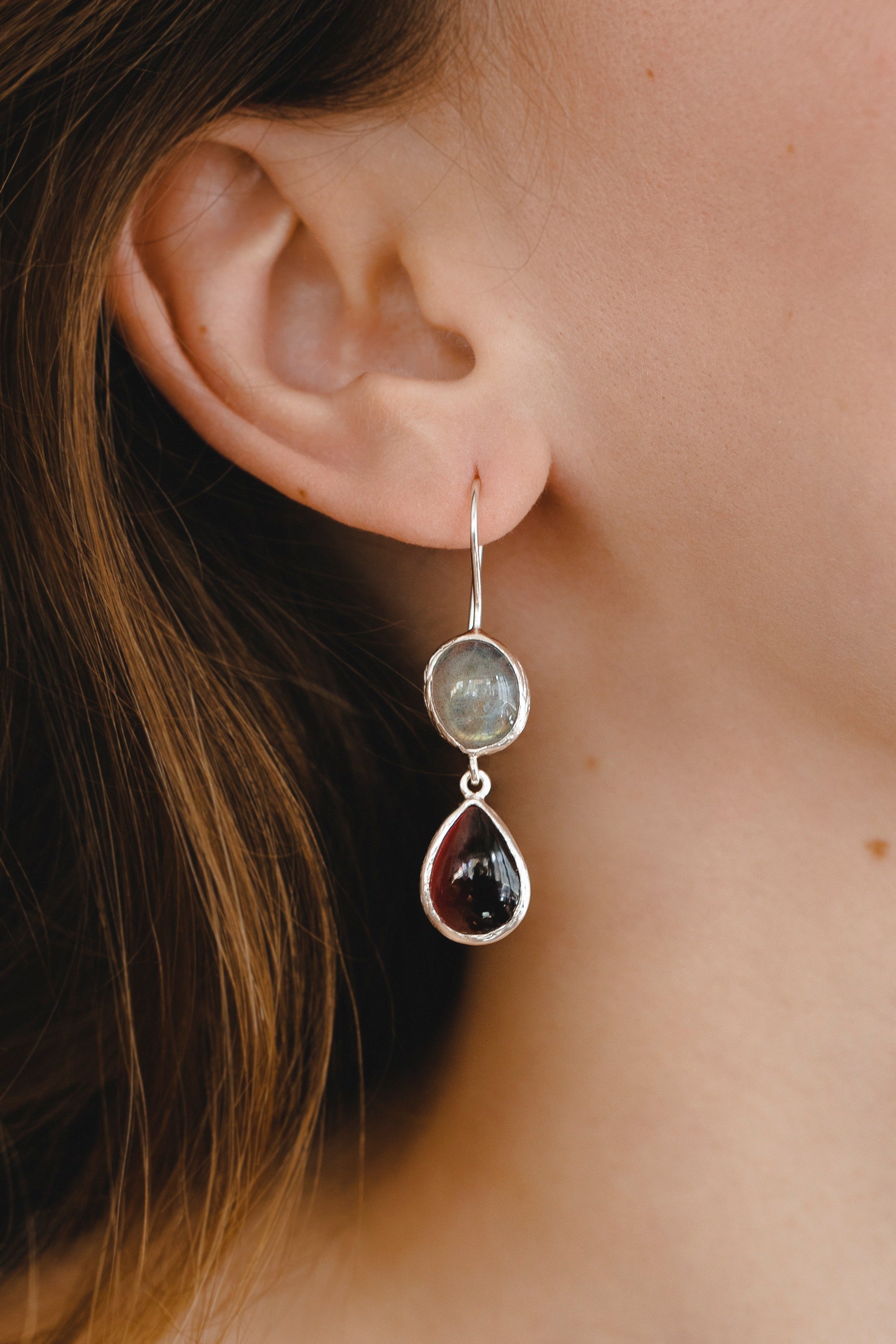 Lepidolite, Labradorite and Garnet Earrings