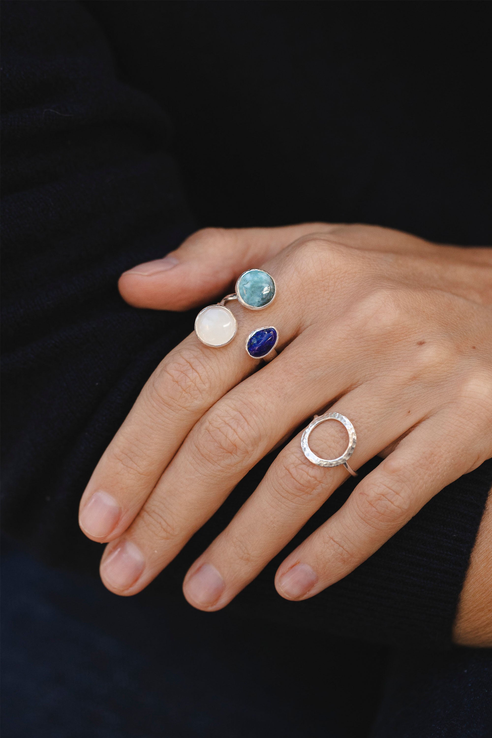 - ring with natural mother of pearl, peruvian opal and lazurite