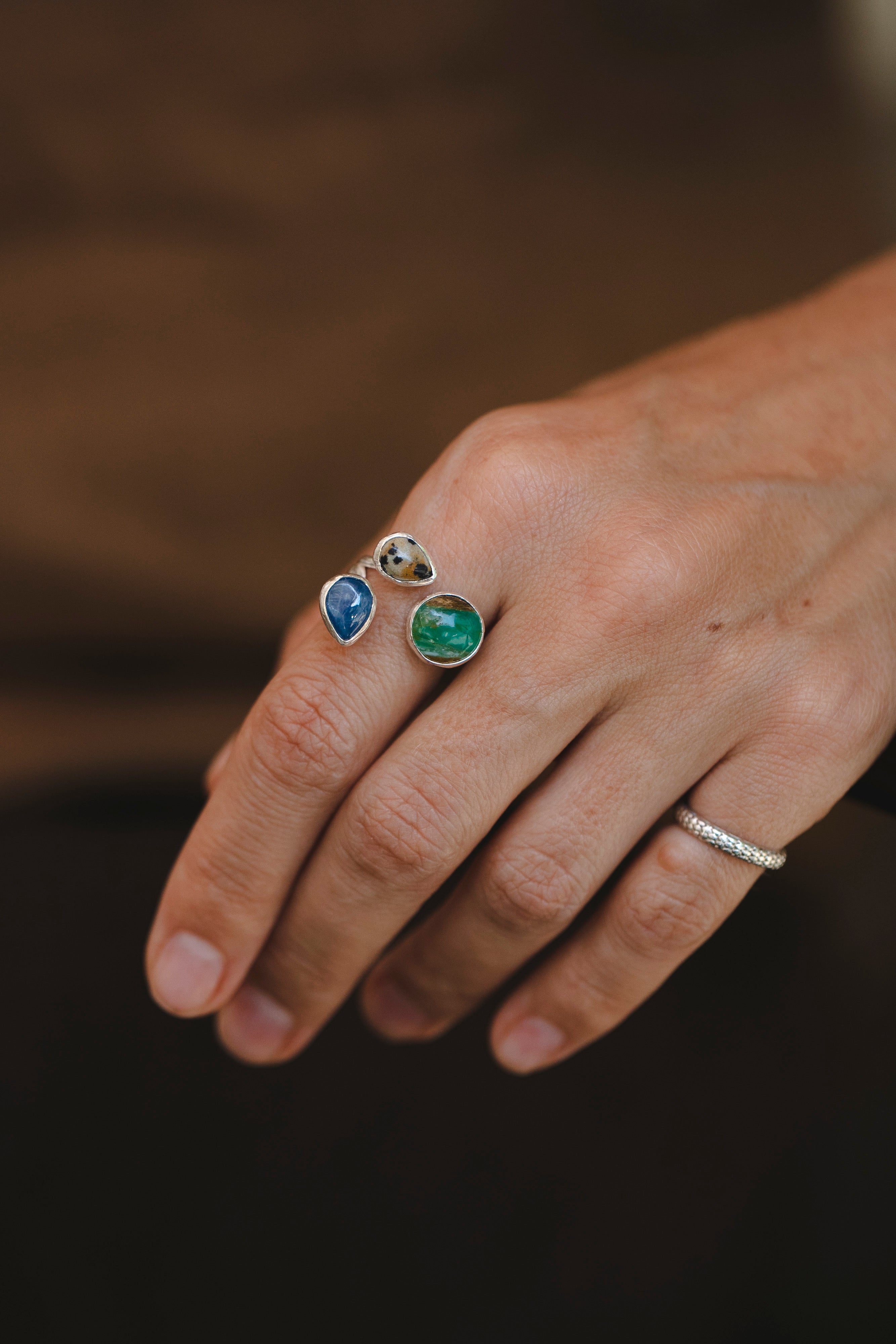 · Ring with natural semiprecious stones — opal, kyanite, jasper