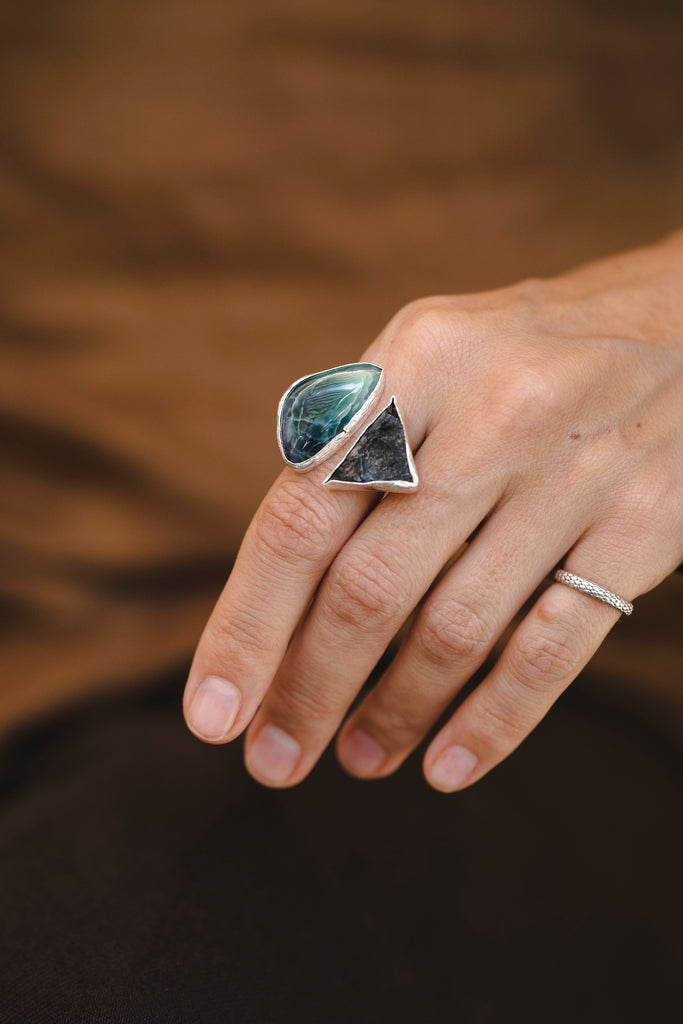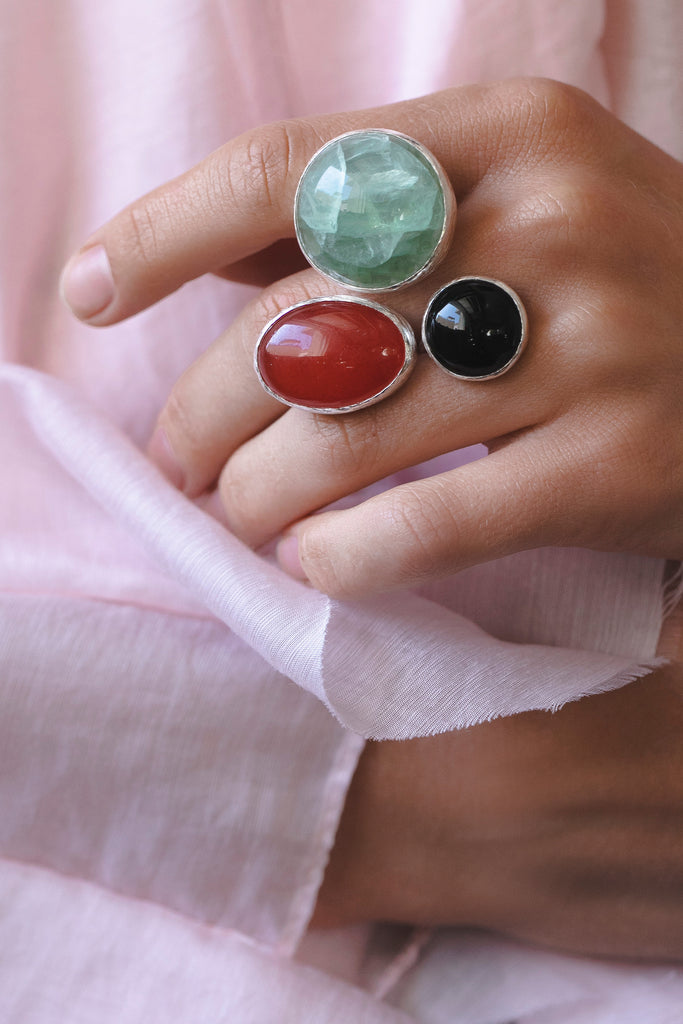 Onyx, Mother of Pearl and Peruvian Opal Ring