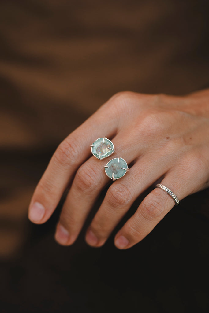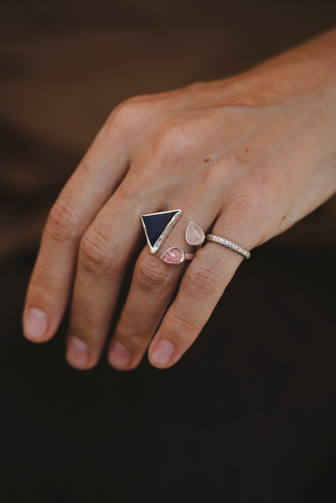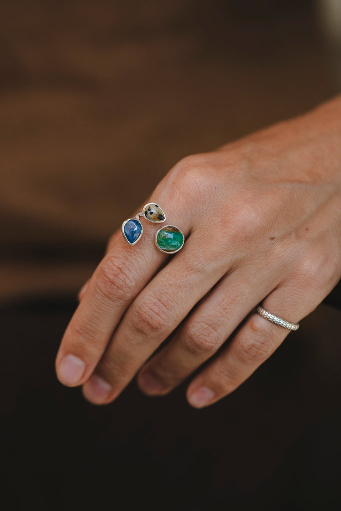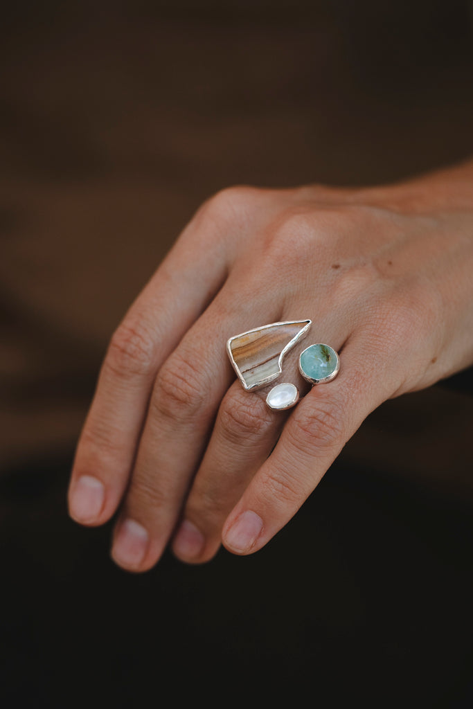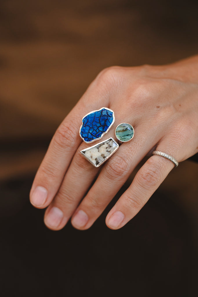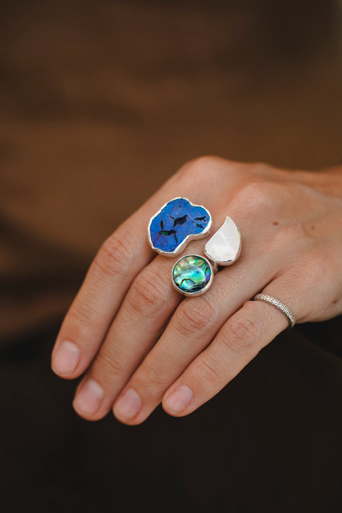 Azurite, Tiger Mother of Pearl and Rock Crystal Ring