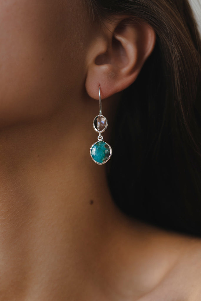 Crystal Rock and Leaf Peruvial Opal Earrings