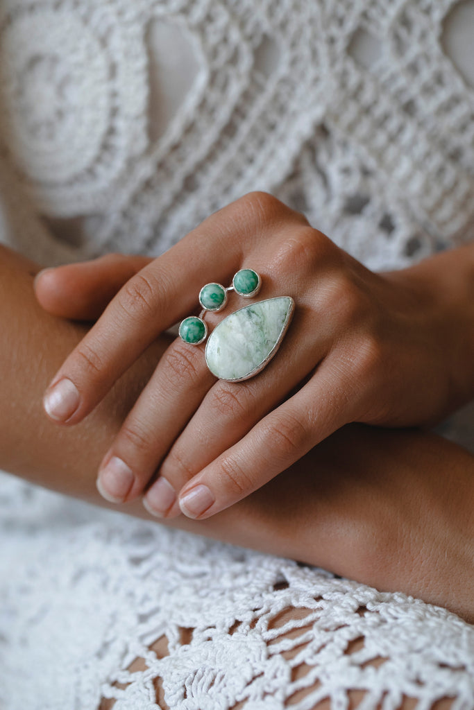 Vezuvianite and Three Jaspers Ring