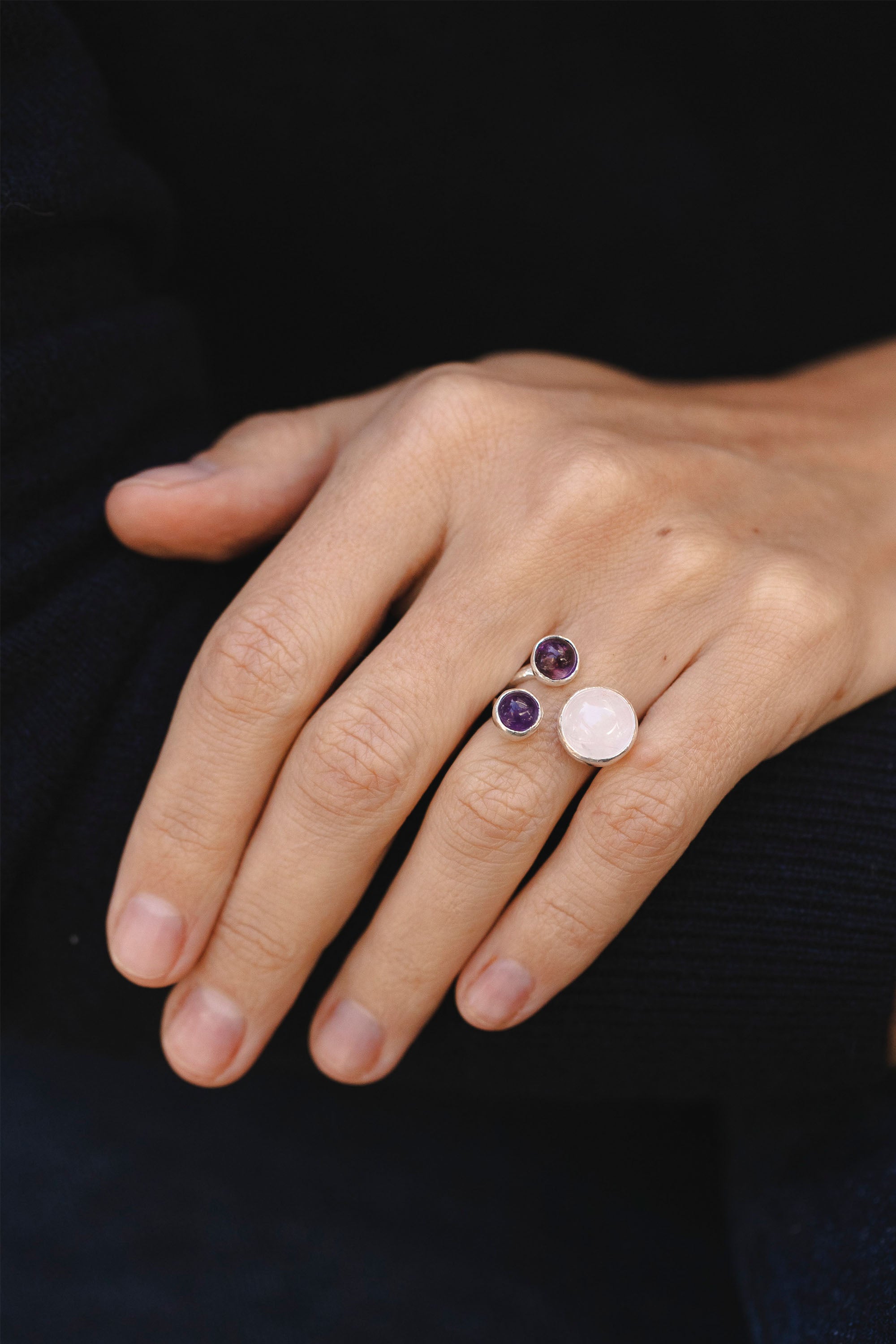 Rose Quartz and Amethyst Ring