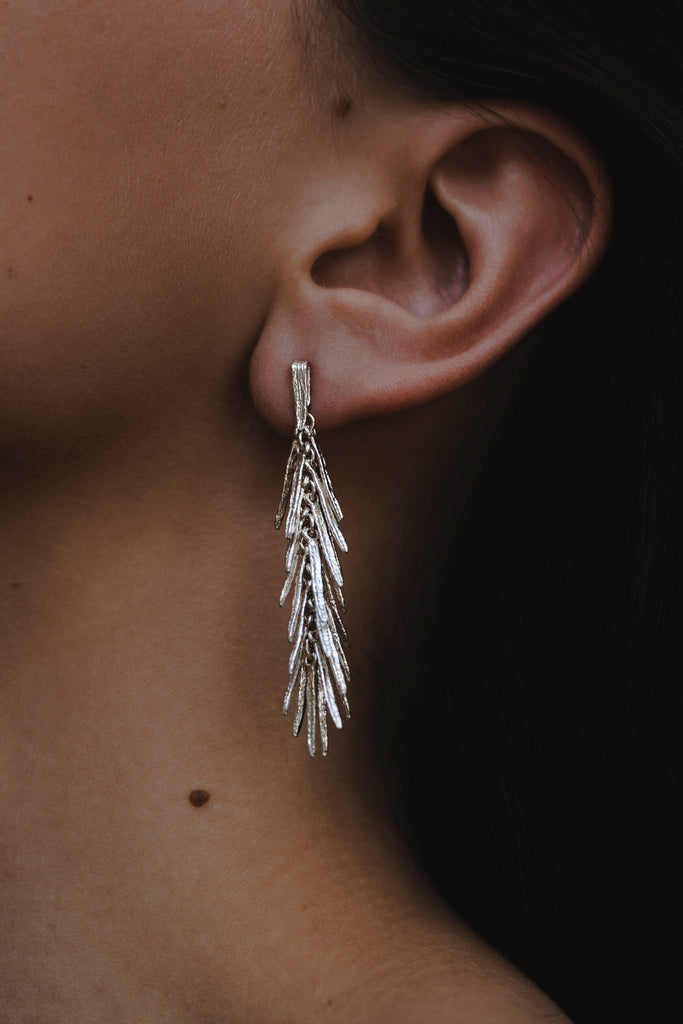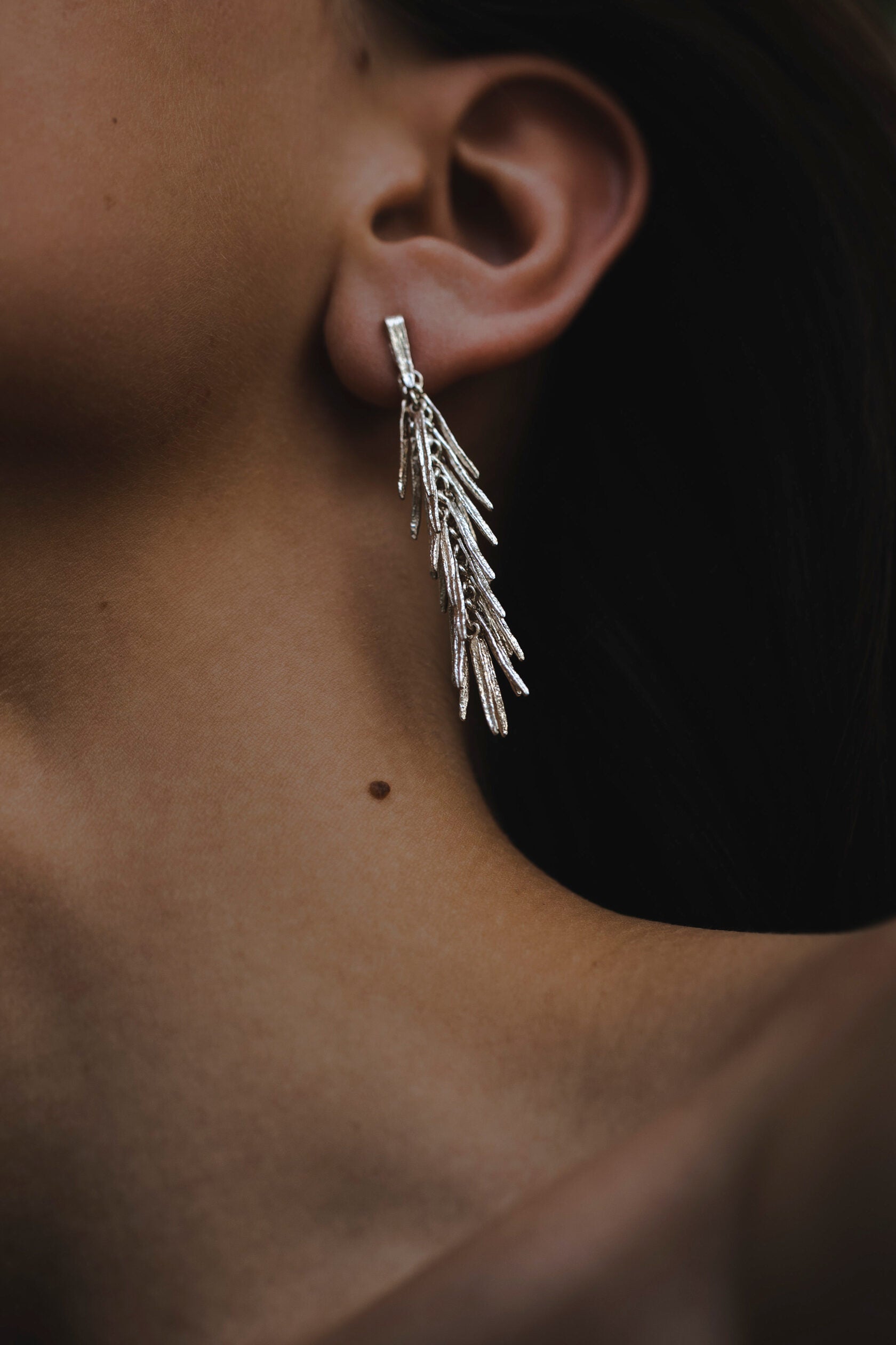 A Mediterranean plant with a poetic name that inspired us to create Rosemary jewelry. Each piece of jewelry is created by hand by craftsmen. There are more than a hundred needles in one piece of jewelry — all of them are attached one by one to a twig base. It is important to us that this is not a mechanical process, because this is the only way to preserve the mobility of Rosemary. When moving, the needles will touch each other and rustle pleasantly.