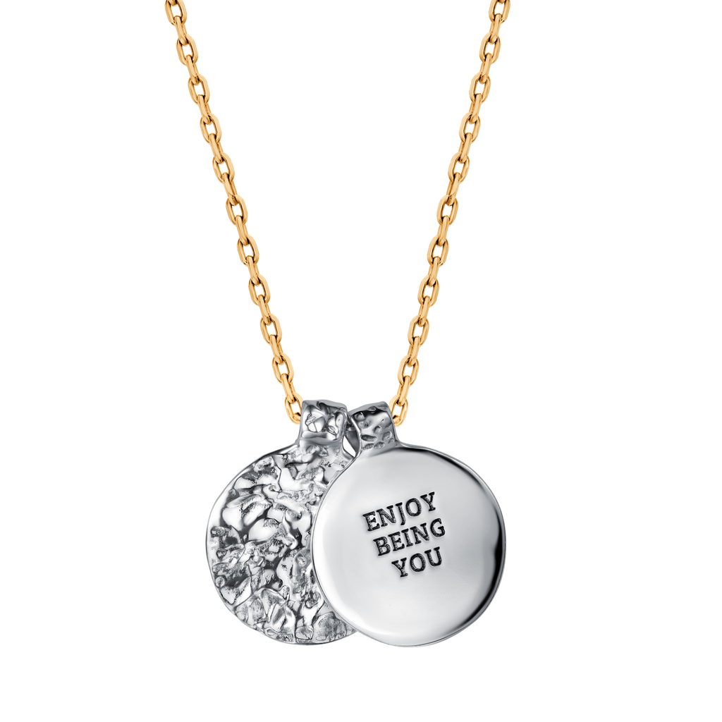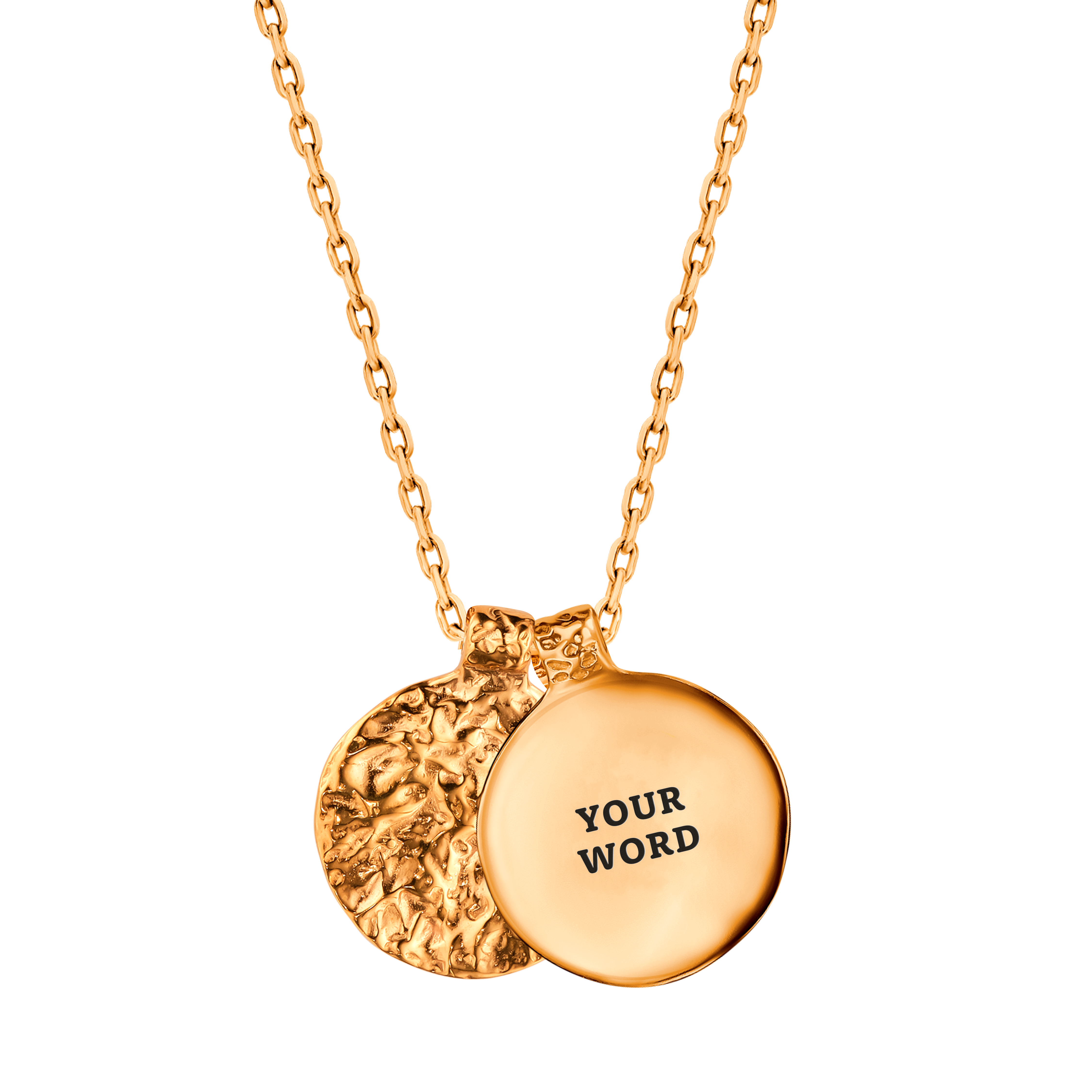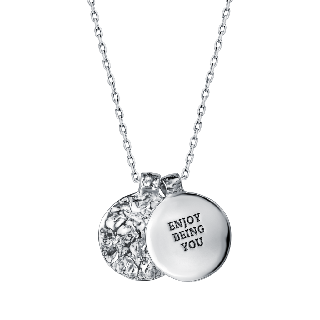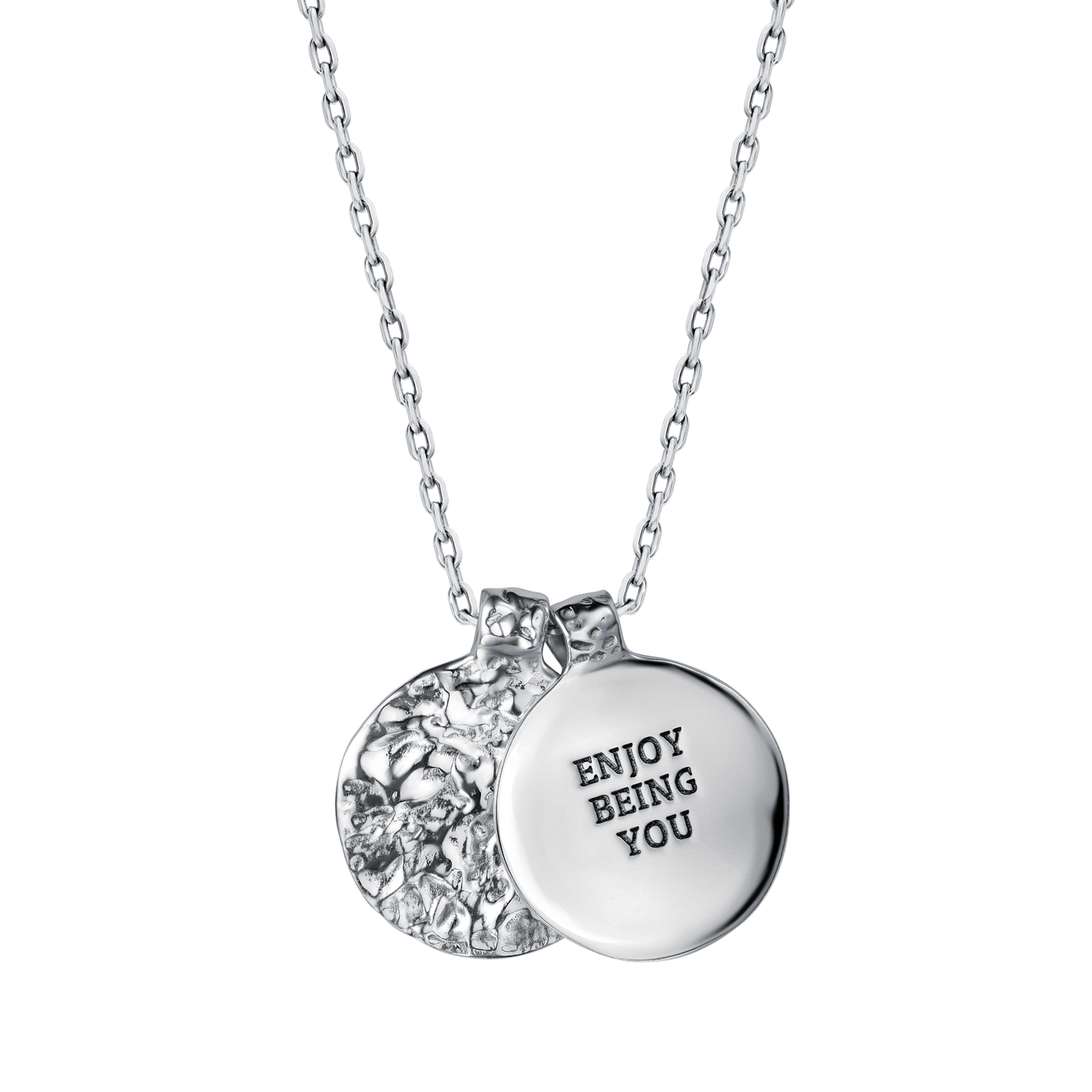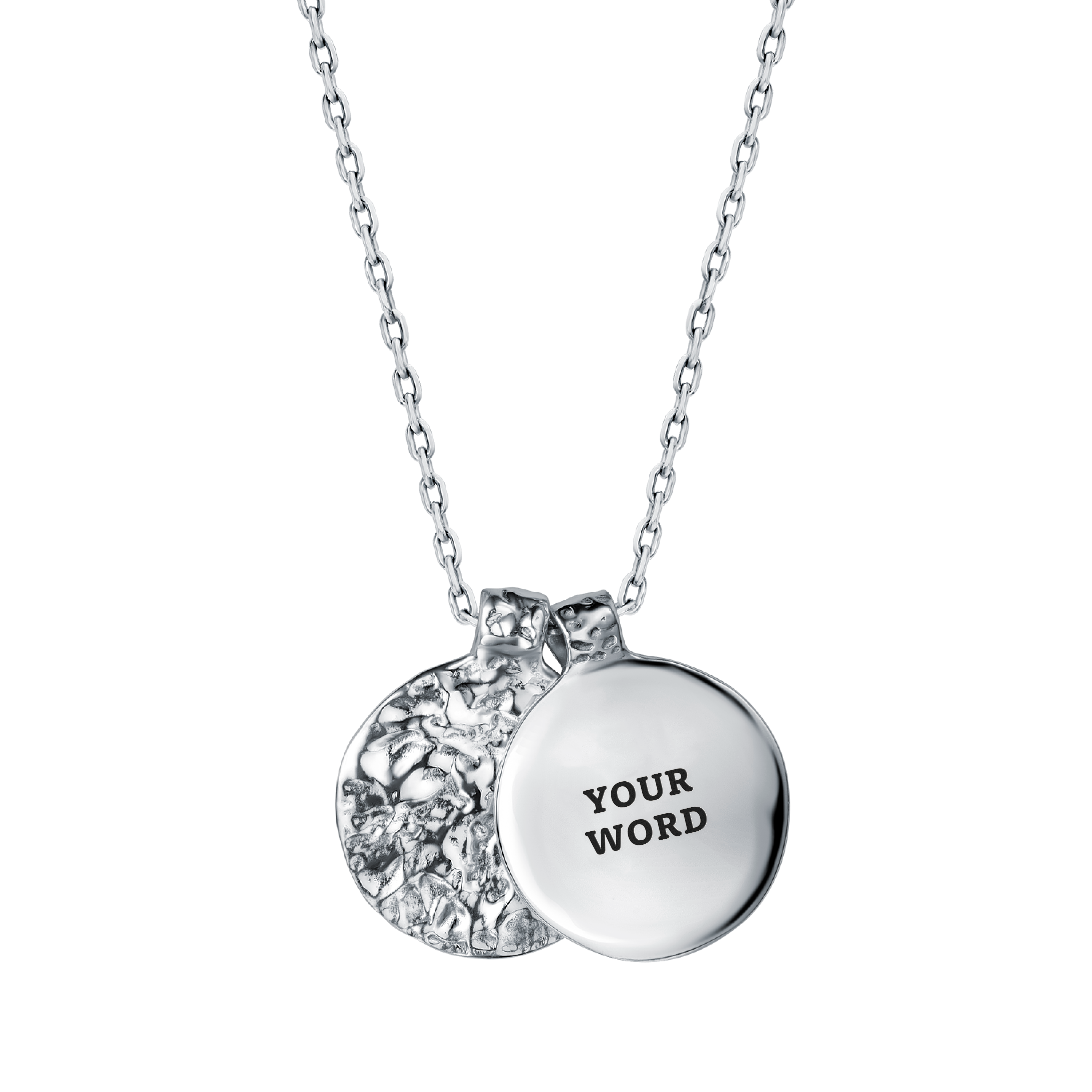 Story Pendant has two sides: one is with a crumpled texture, and the second is smooth and glossy. The second side will bear your inscription, which you can keep close to your heart or show to others — it's up to you!