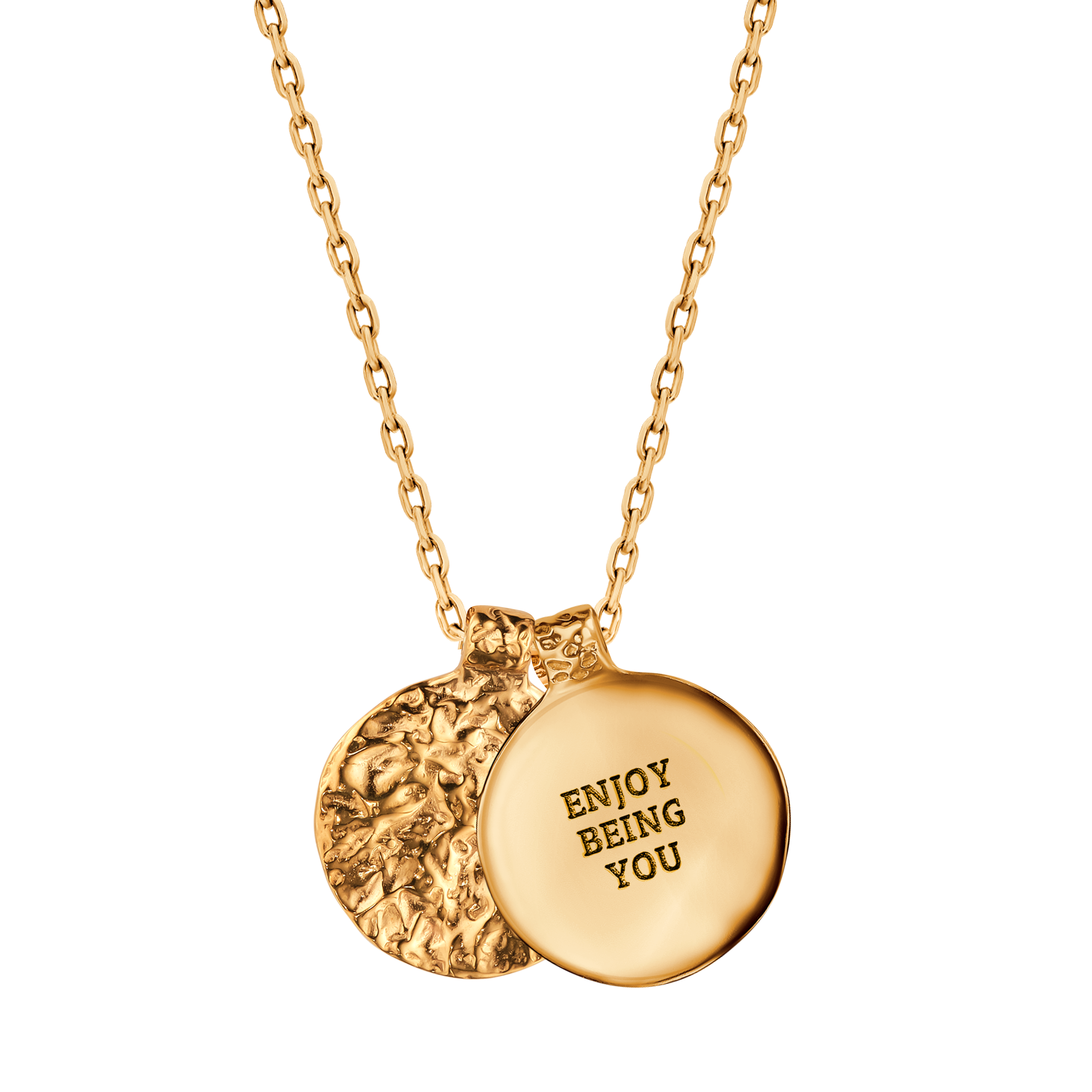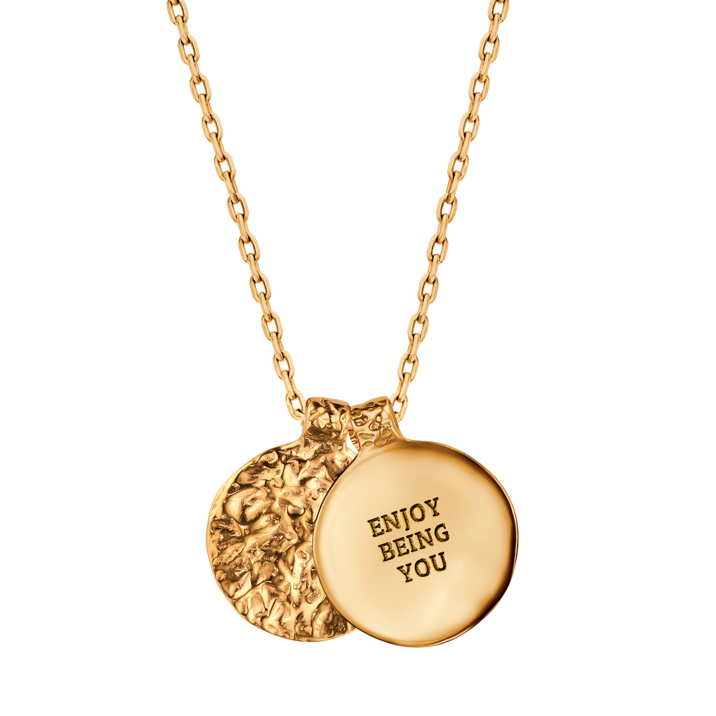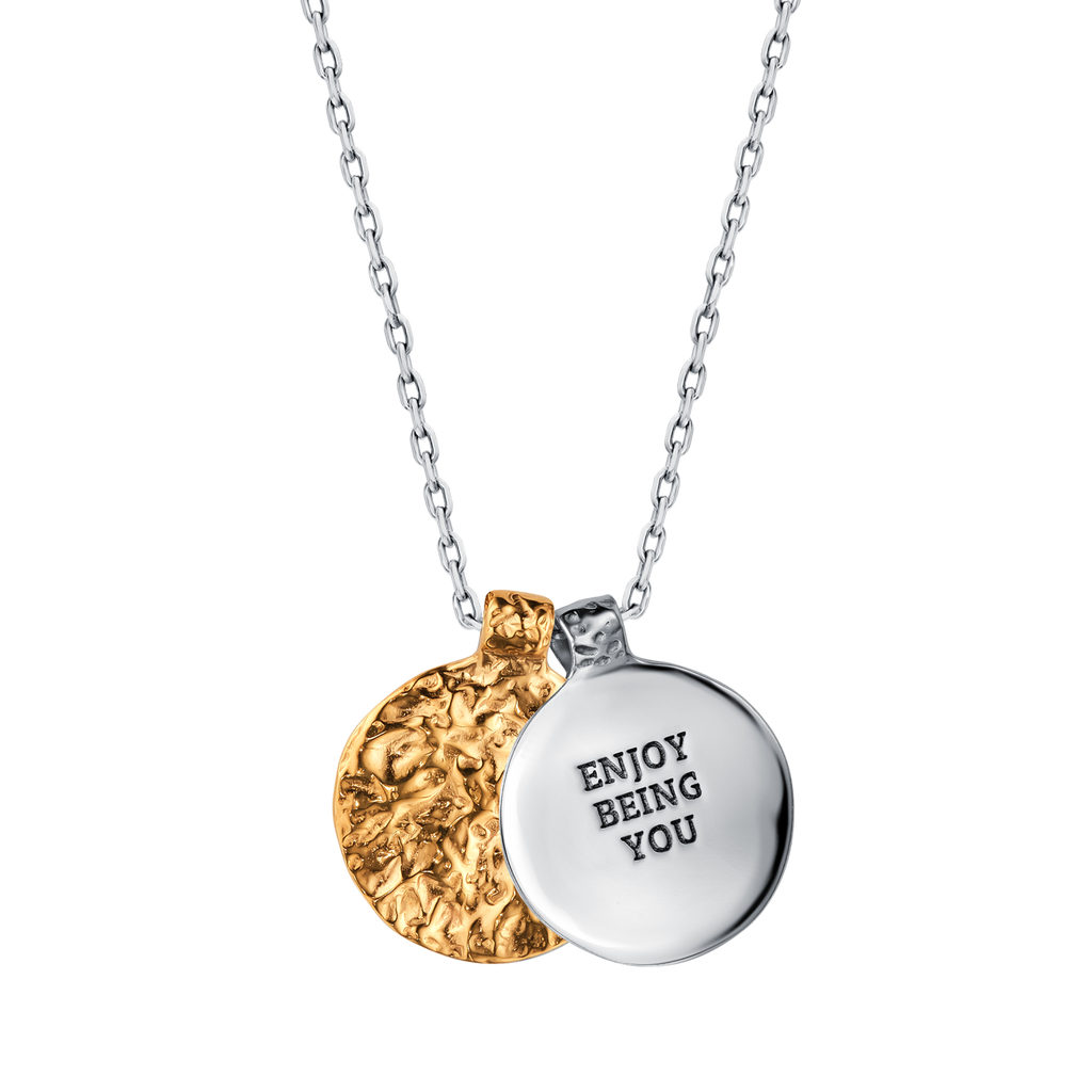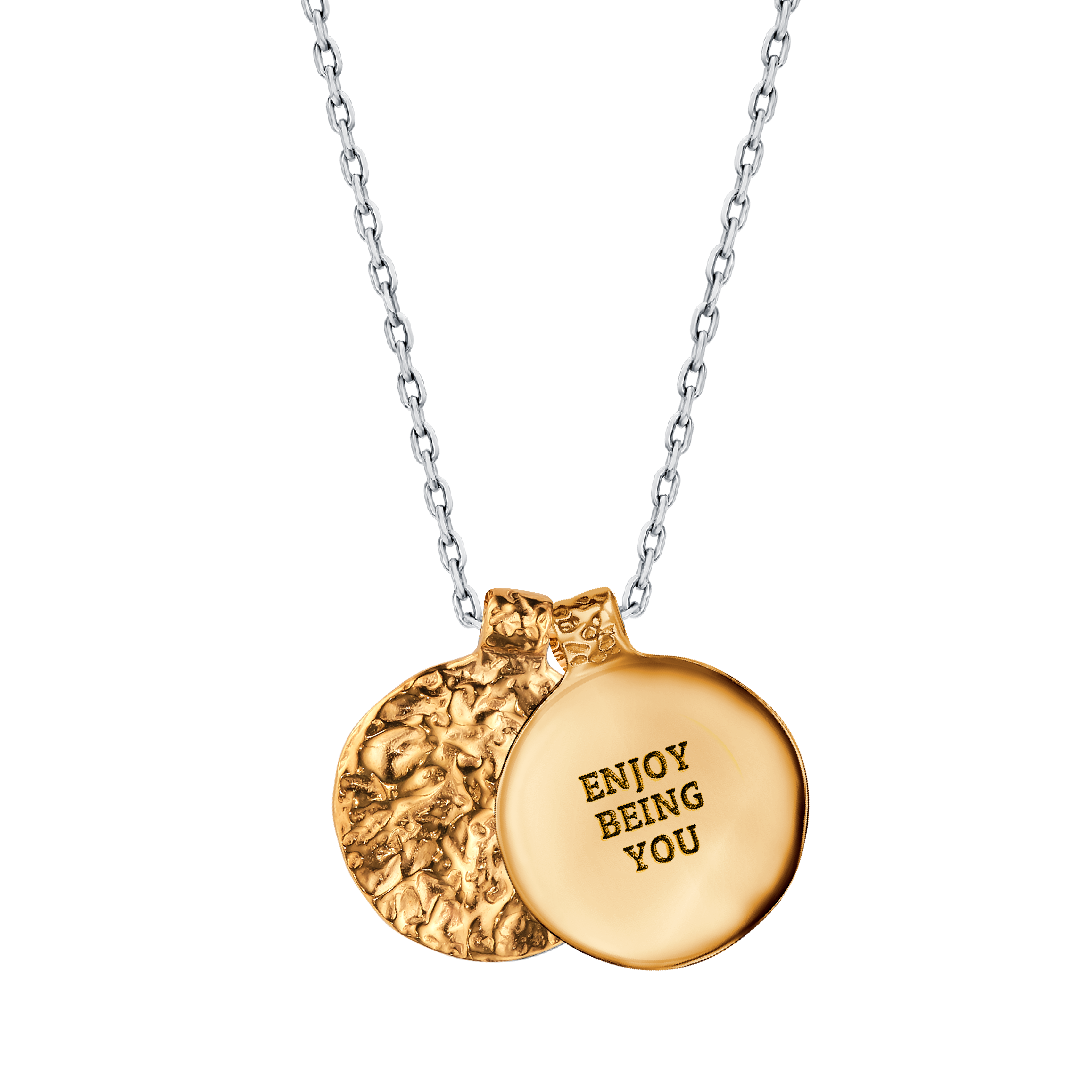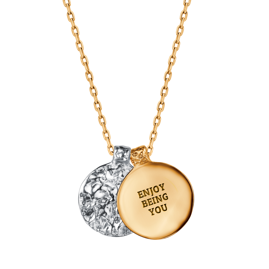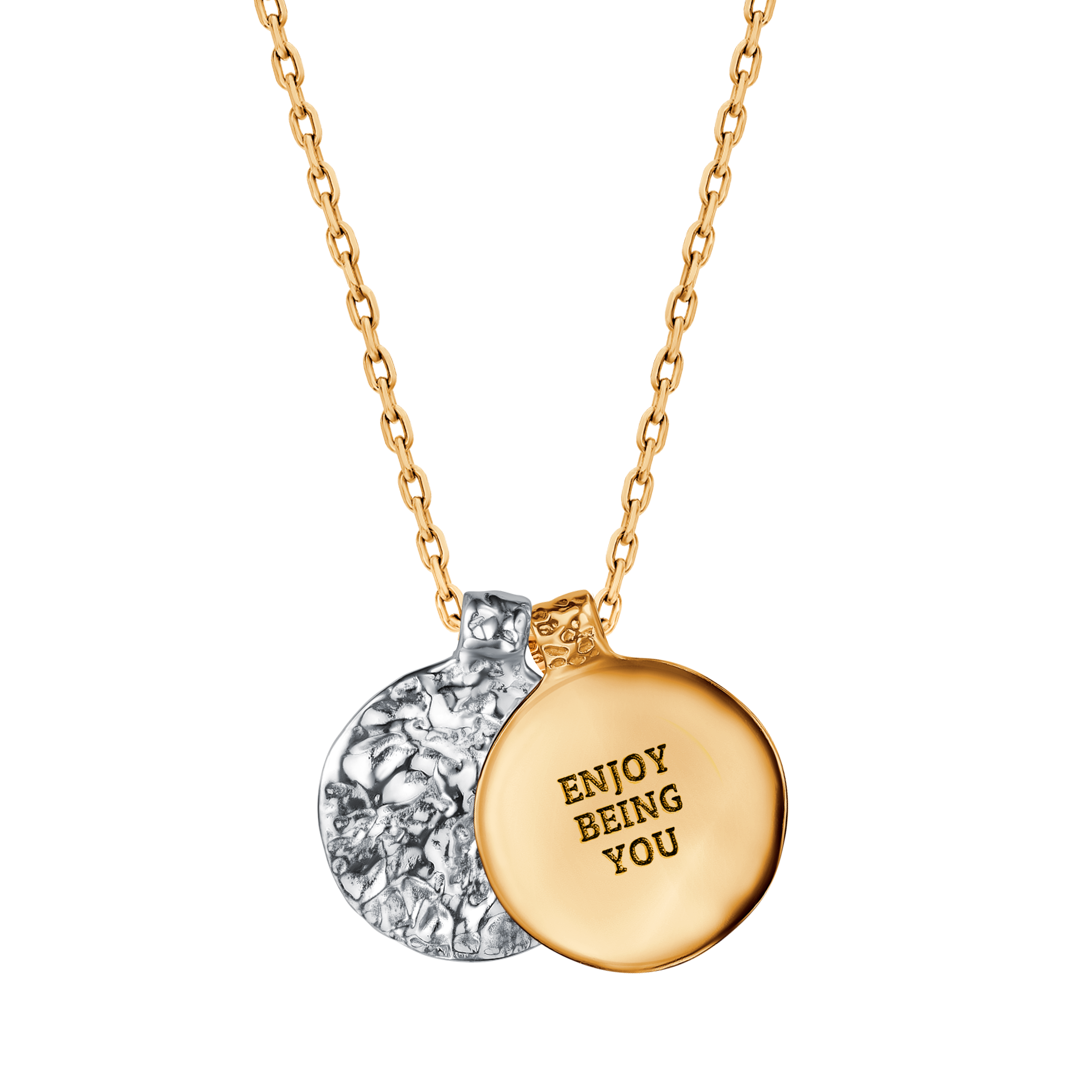 Story Pendant has two sides: one is with a crumpled texture, and the second is smooth and glossy. The second side will bear your inscription, which you can keep close to your heart or show to others — it's up to you!
