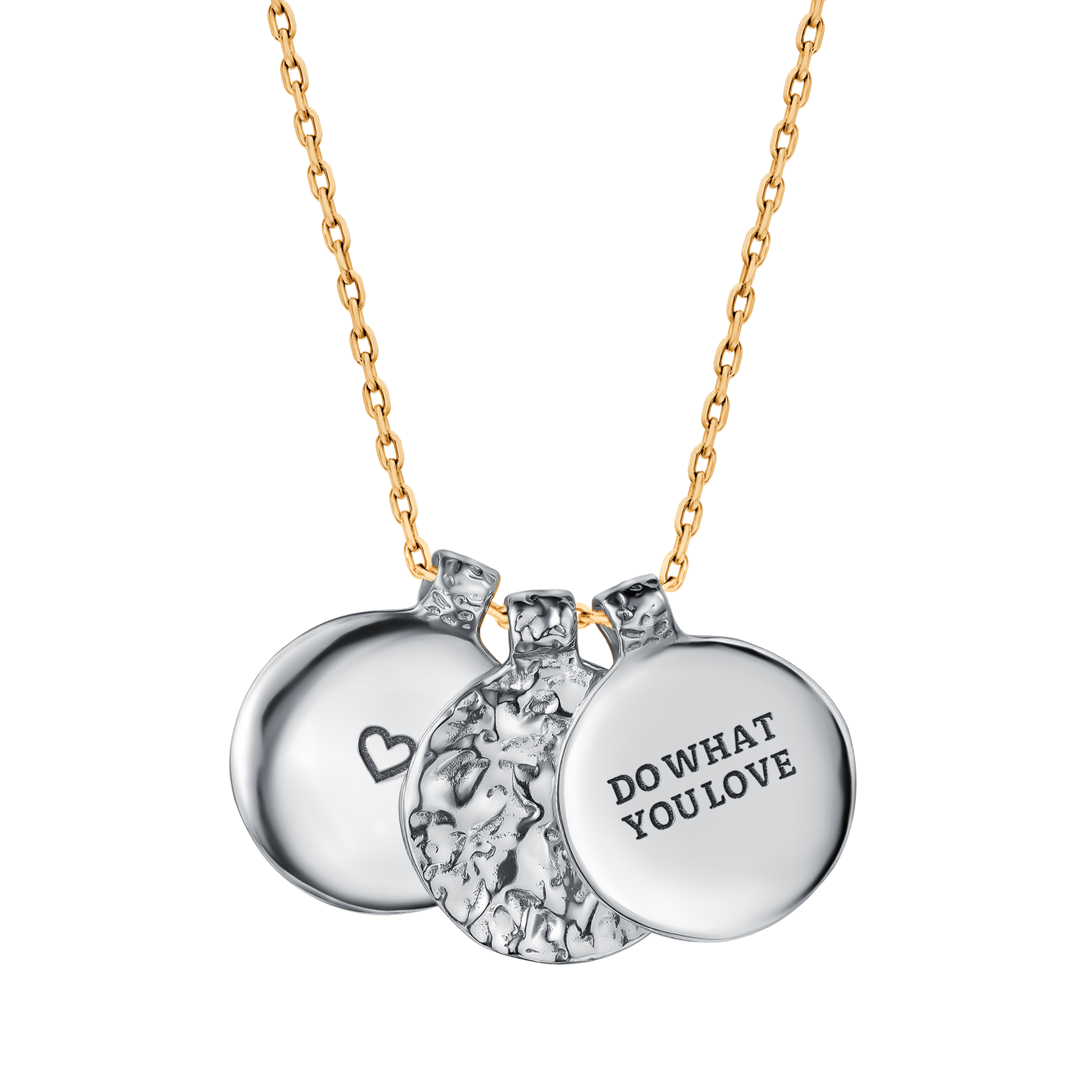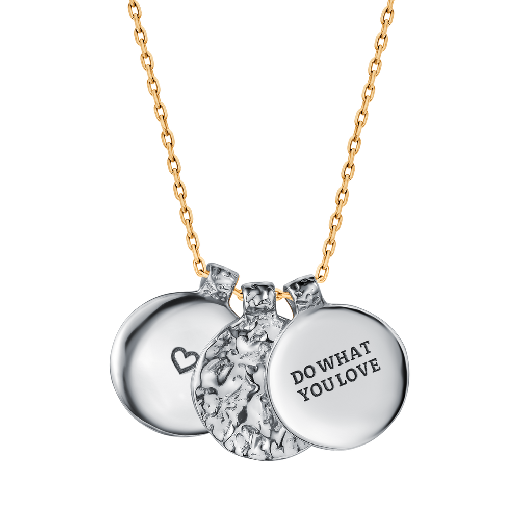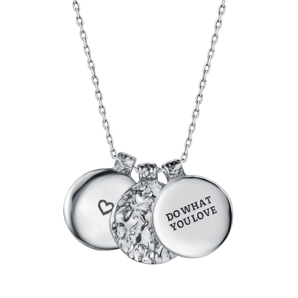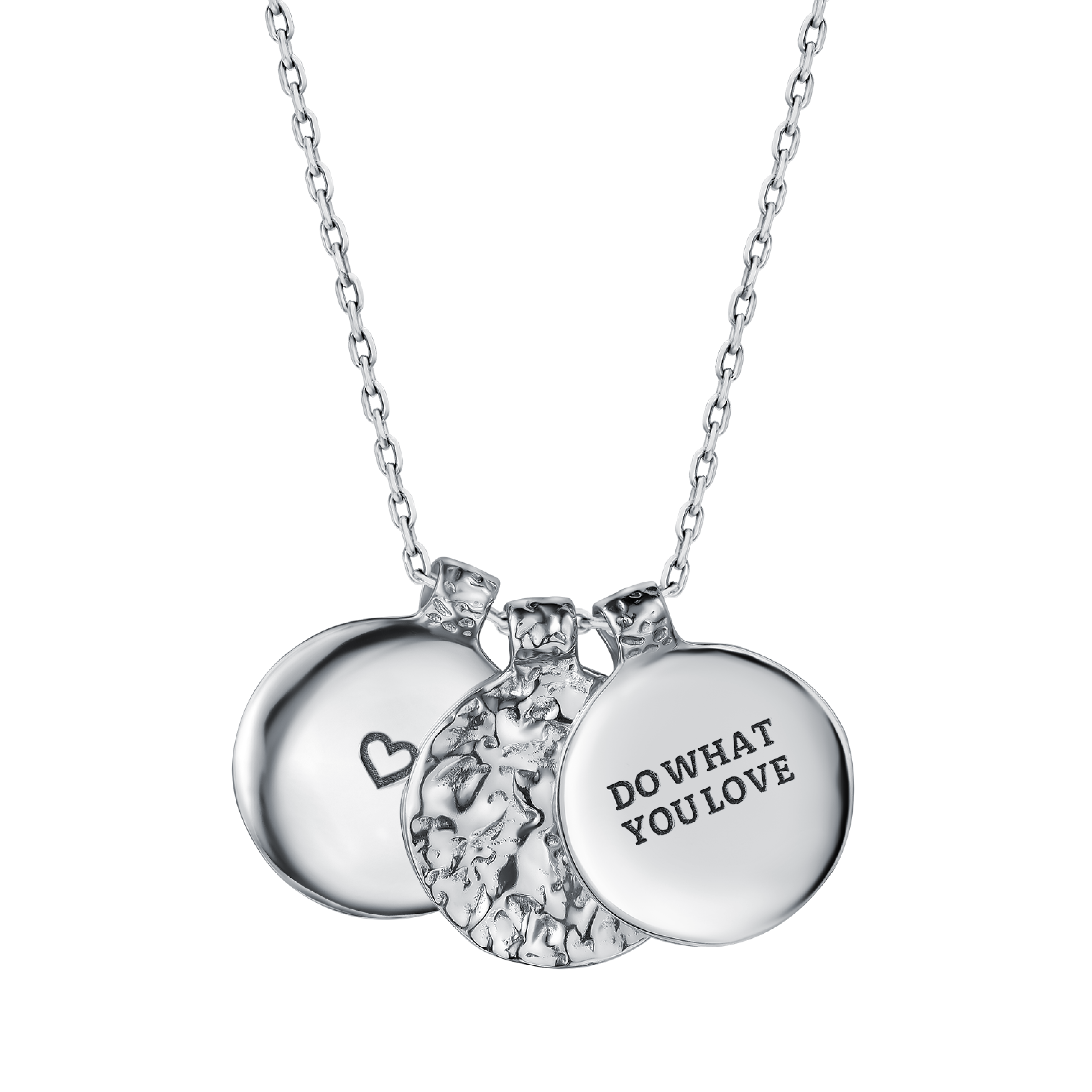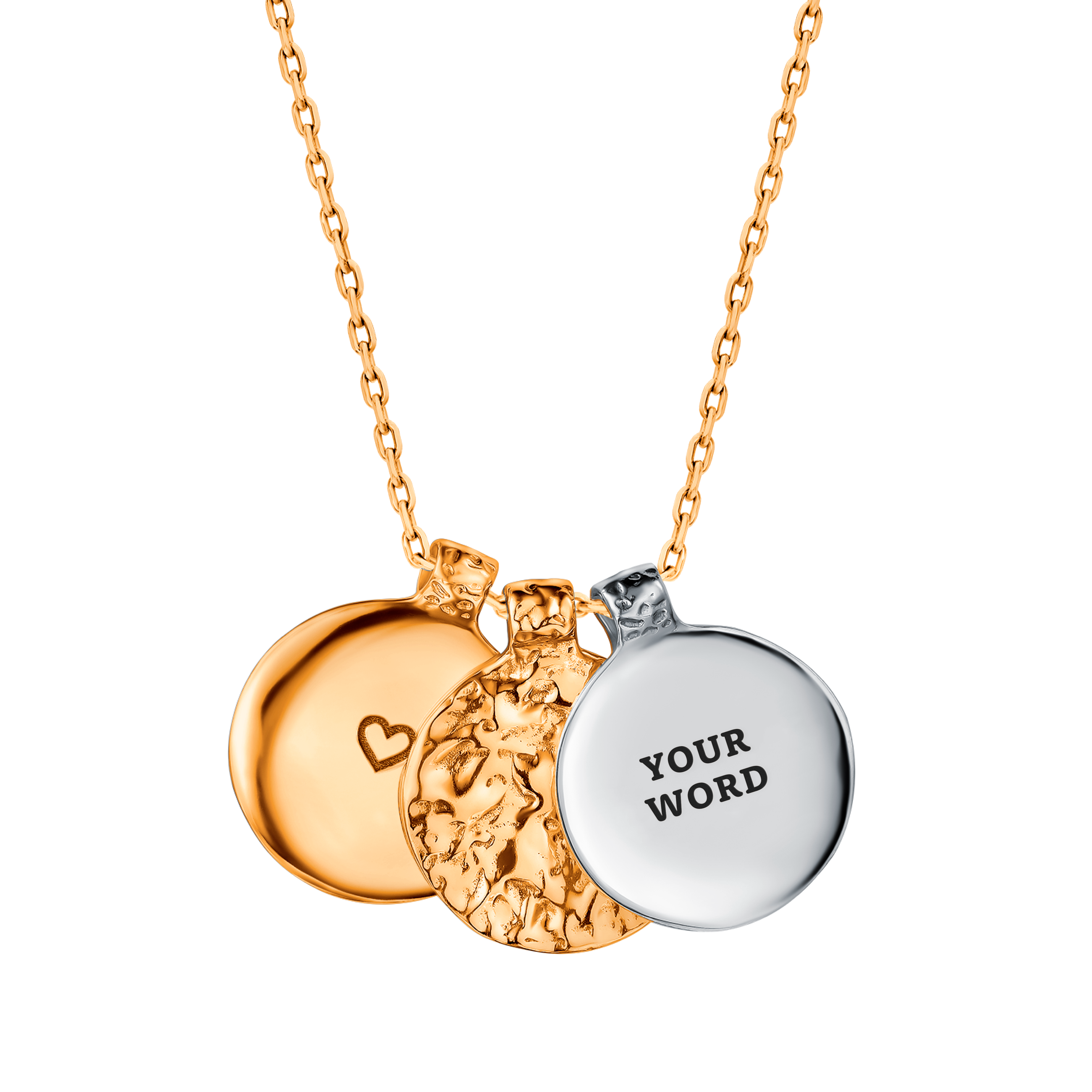 Story Pendant has two sides: one is with a crumpled texture, and the second is smooth and glossy. The second side will bear your inscription, which you can keep close to your heart or show to others — it's up to you!