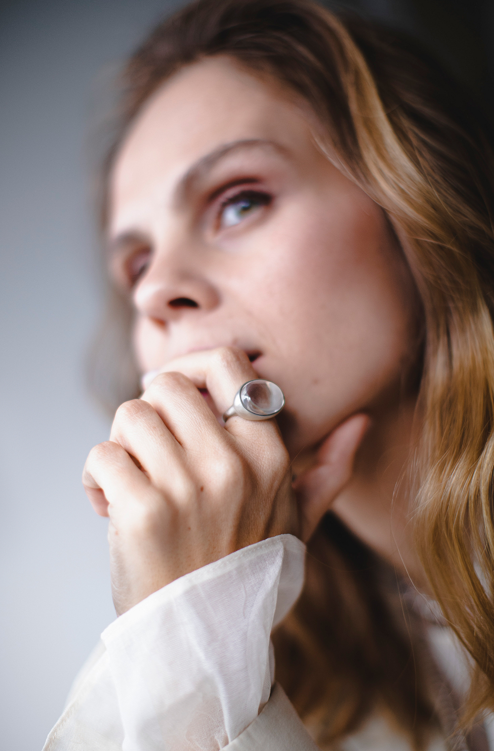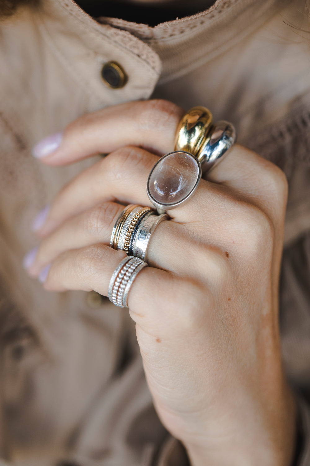 The transparency of the clear quartz in Power Ring subtly enhances any look, adding light and depth. It pairs beautifully with silver and gold, complements layered combinations with other stones and can serve as either a delicate accent or the centerpiece of an outfit โ an effect that becomes even more powerful when styled with the Power Ring 2.0 in gold. Power Ring proves that it exists beyond trends: itโs about taste, balance and inner strength that needs no validation.