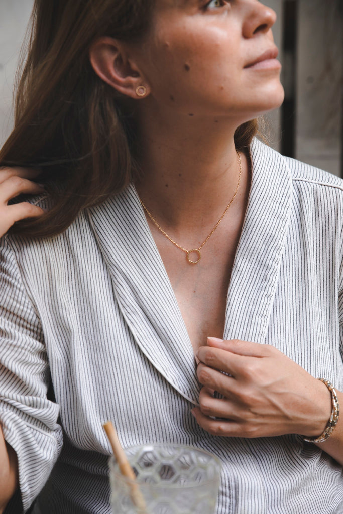 Gold plating is sensitive to water, creams, and perfume. We recommend avoiding contact to preserve its shine and beauty.