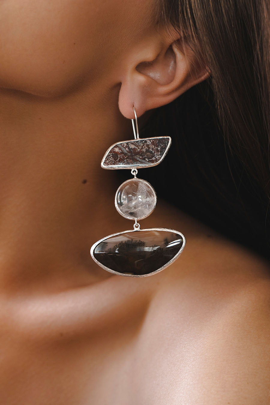 Jasper, Ophite, Rock Crystal and Moss Agate Earrings
