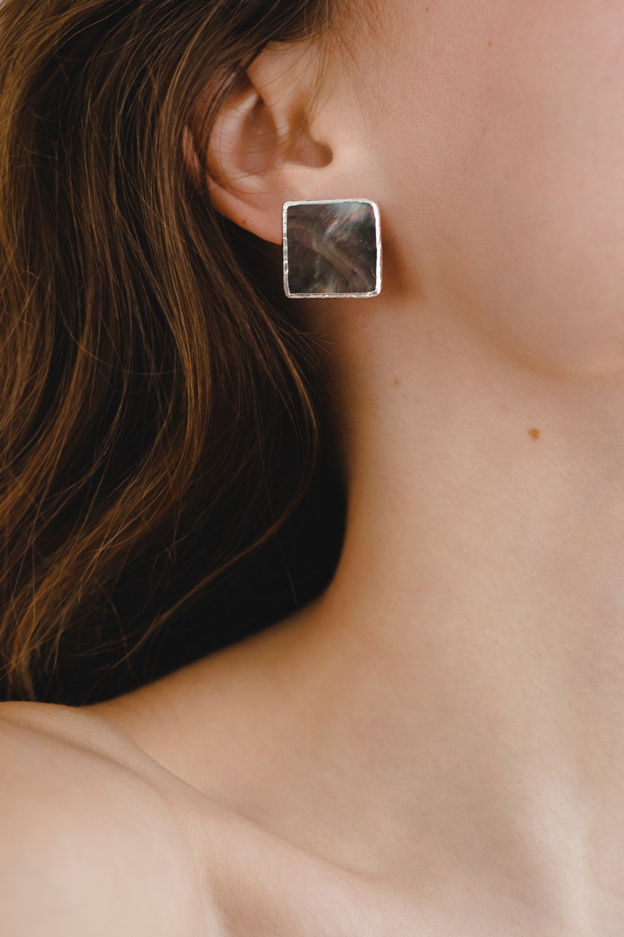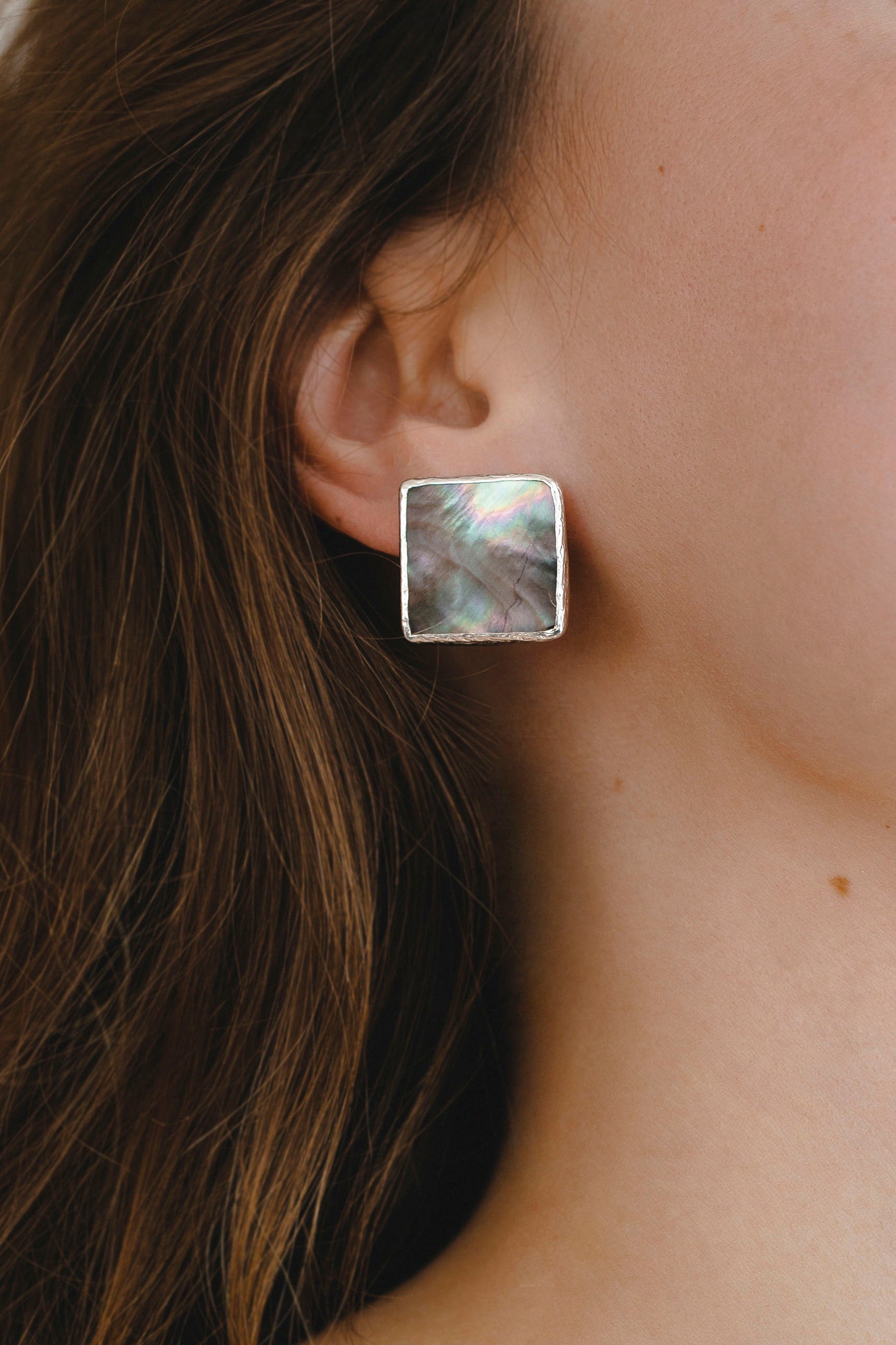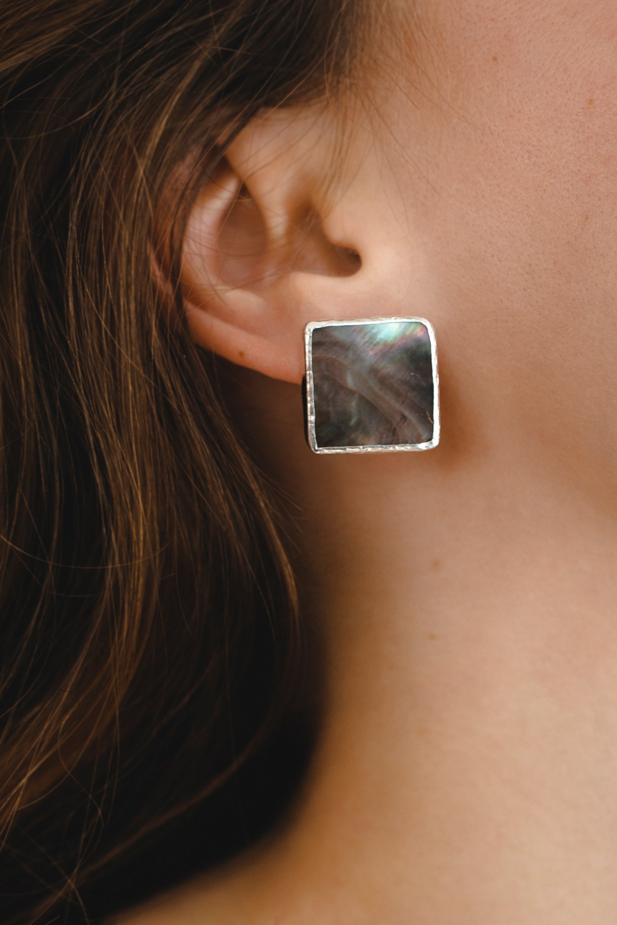 Square Dark Mother of Pearl Studs