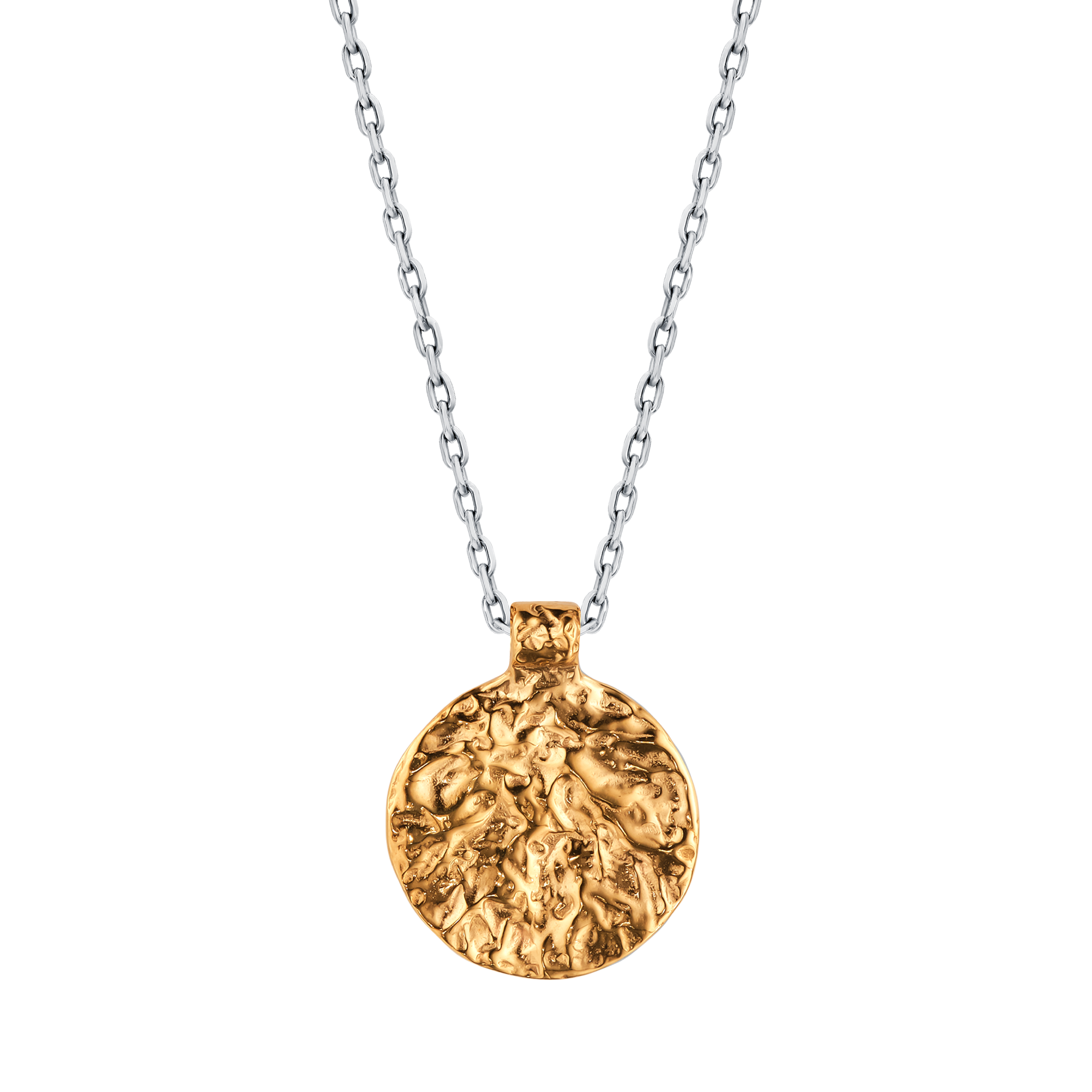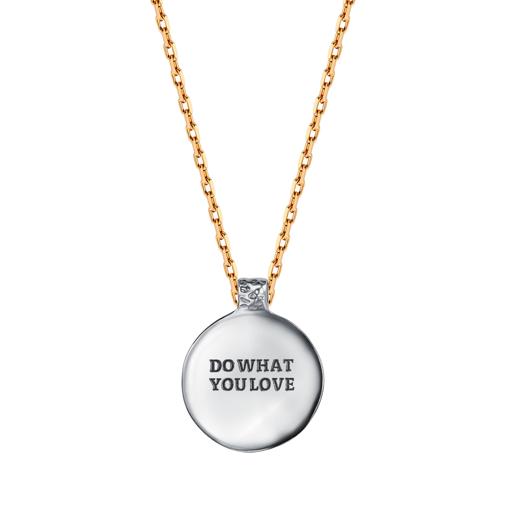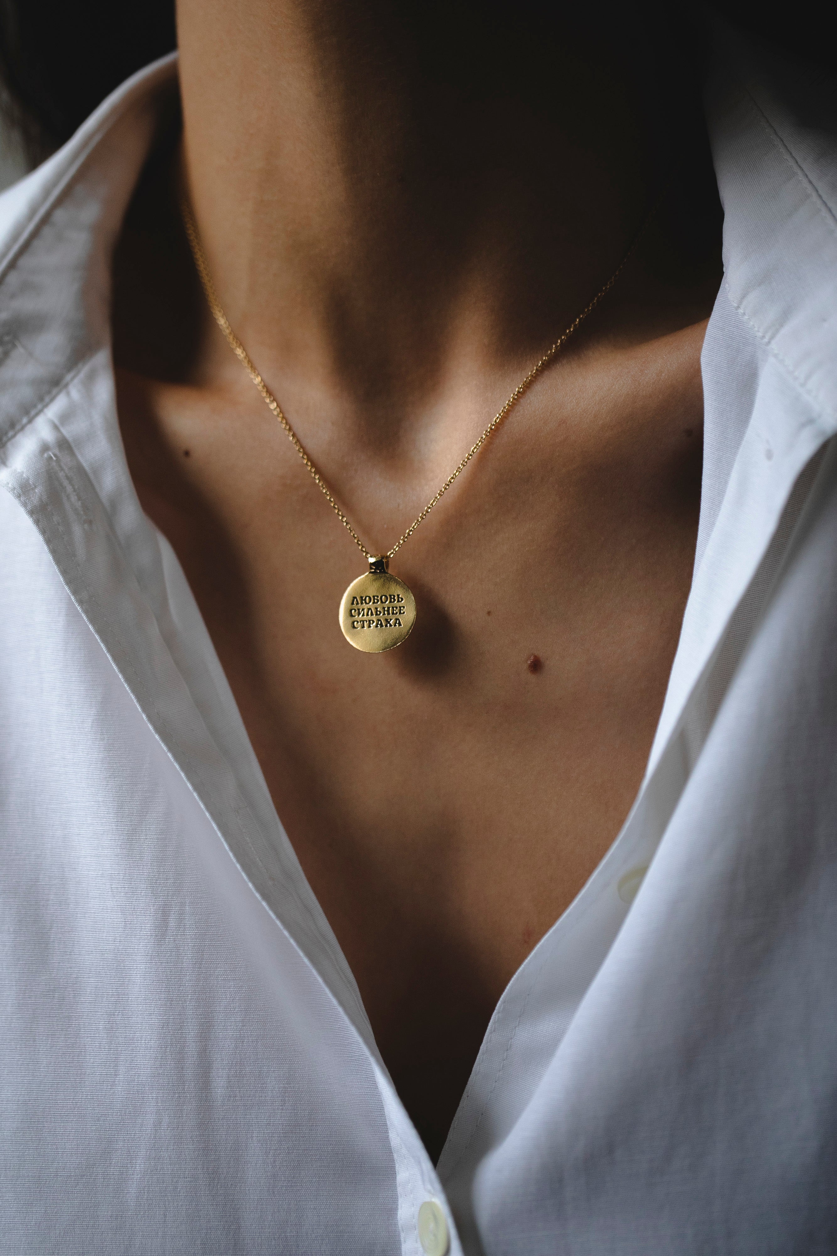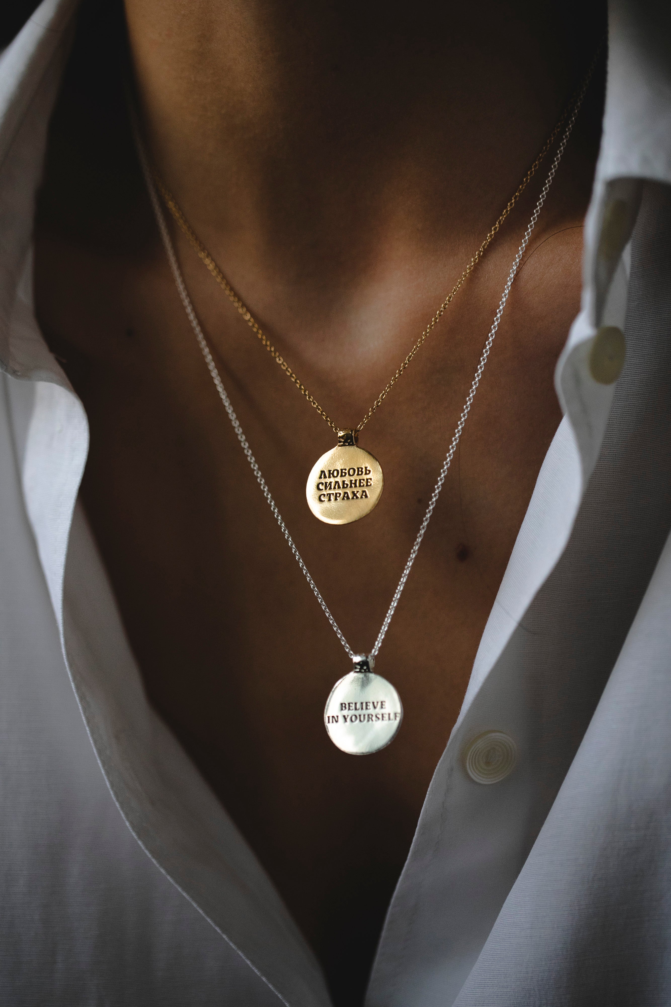 Story Pendant has two sides: one is with a crumpled texture, and the second is smooth and glossy. The second side will bear your inscription, which you can keep close to your heart or show to others — it's up to you!