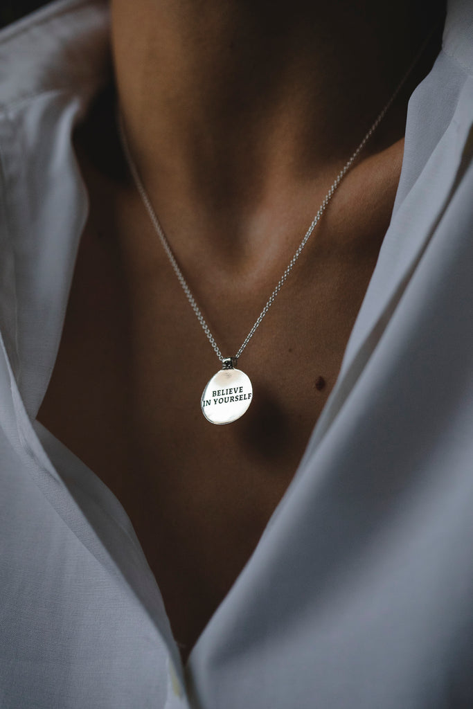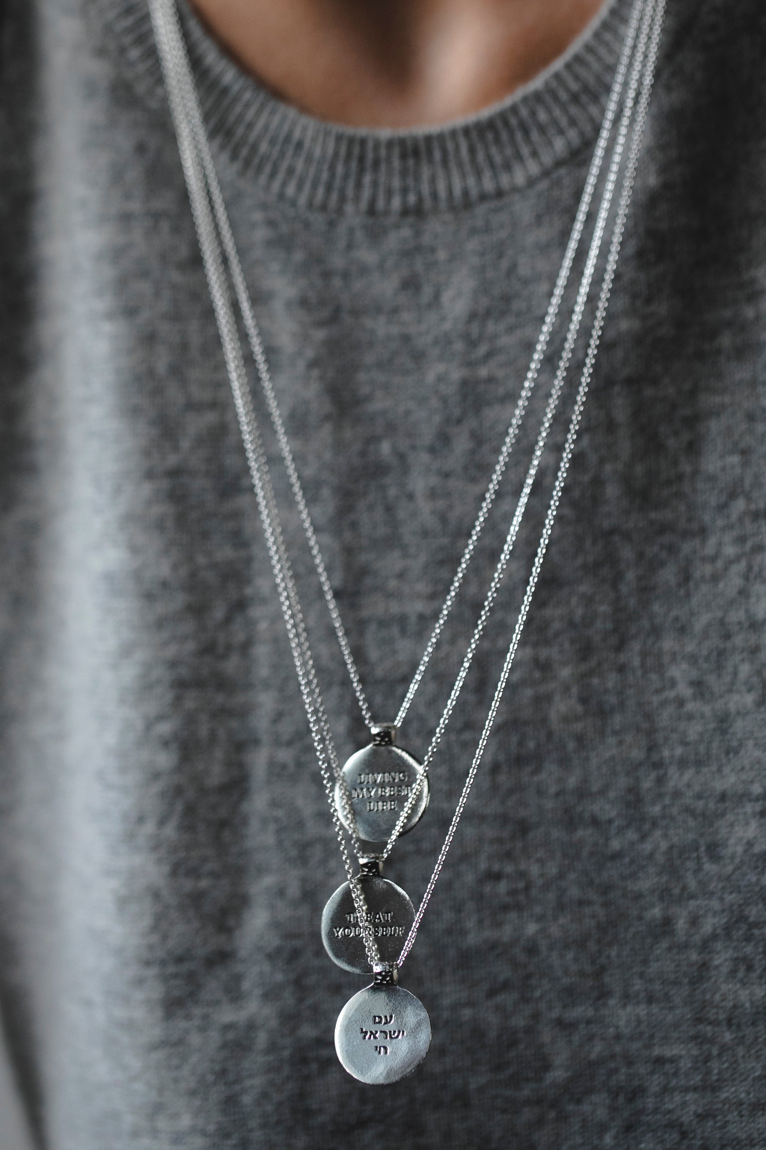 Each piece of jewelry is made to order: we will engrave something meaningful to you on the back of the medallion.